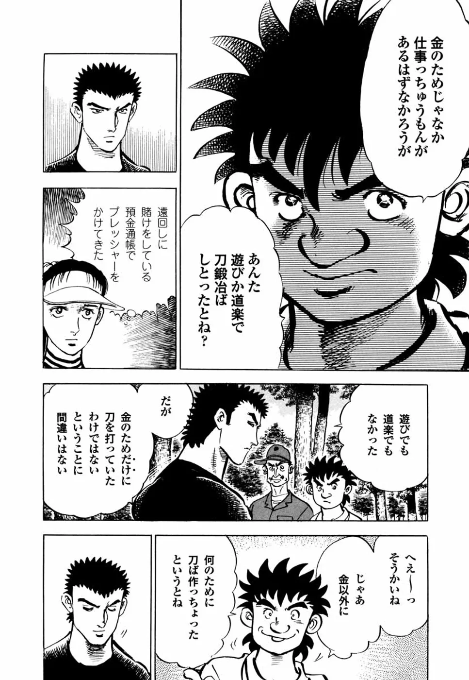 【前巻までのあらすじ】元刀鍛冶師だった一丸は、浅草に来て、桂に才能を見込まれ、初めてゴルフクラブを握る。日本アマチャンピオンの御園や山中プロらとの対戦では「目でショットを盗む」職人技と天性の才能を見せ、周囲の度肝を抜いた。今度は、互いに才能を持ちながらも日の浅い素人同士の一平とのマッチプレー対決。正確な距離を刻み、リードする一平に対し、コースレイアウトに苦しむ一丸だったが、設計者のだましの技術にふれ、いままでゴルフを軽く思っていた自分を知り、心から「礼」をする。