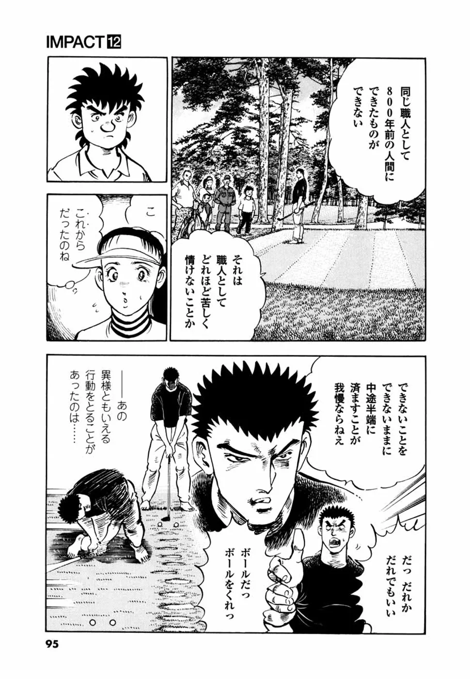 【第12巻あらすじ】残すホールは3つ。鳴海一丸対石塚一平のゴルフマッチもクライマックス。1アップと断然優位に立つ一平に鬼門ホールが待ち受ける。一丸の逆転勝利はあるのか? 勝負にゴルフに、真から目覚めた男たちの熱いドラマは必見。龍虎対決がついに決着する!!