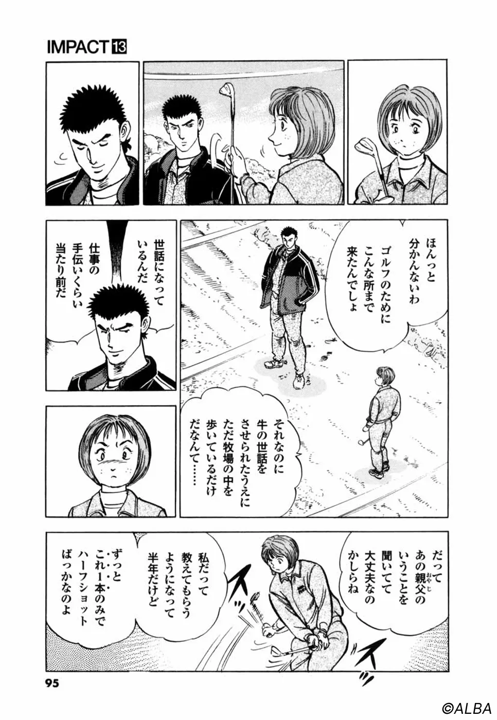 【第13巻あらすじ】元刀鍛冶師・鳴海一丸がゴルフに挑む。宿敵・石塚一平とのゴルフマッチに引き分けた一丸だが、自分の未熟さを痛感。以前、釧路で戦った、プロゴルファー・山中一佐のもとへ修業に向かう。それも真冬の北海道・釧路の牧場。そこで一丸が得るものとは、一体何?