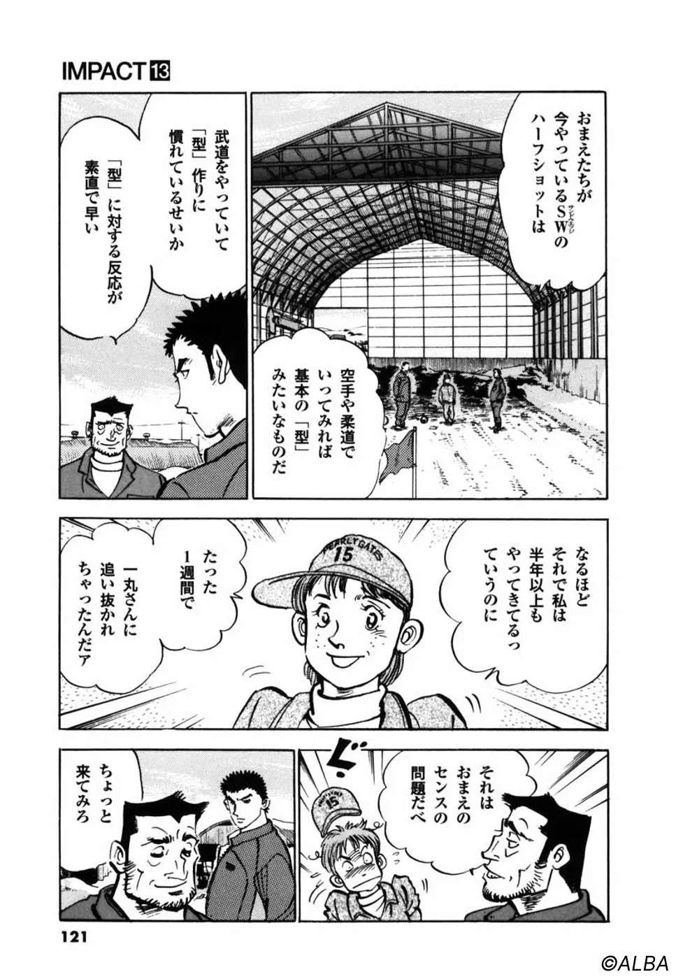 【第13巻あらすじ】元刀鍛冶師・鳴海一丸がゴルフに挑む。宿敵・石塚一平とのゴルフマッチに引き分けた一丸だが、自分の未熟さを痛感。以前、釧路で戦った、プロゴルファー・山中一佐のもとへ修業に向かう。それも真冬の北海道・釧路の牧場。そこで一丸が得るものとは、一体何?