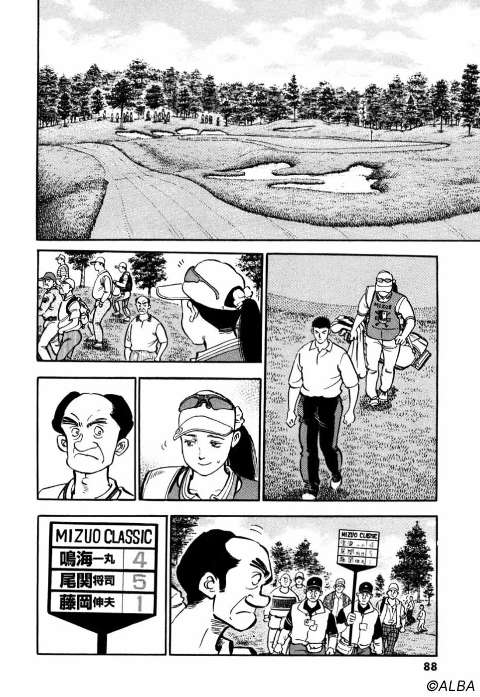 【前巻までのあらすじ】浅草に来て、仙道桂に才能を見込まれ、初めてゴルフクラブを握った鳴海一丸。刀鍛冶で身につけた「目でショットを盗む」職人技で、才能と勝負強さを周囲に見せつけ、度肝を抜いた。ゴルフに接し、その奥深さを知った一丸は、心身を鍛え直して本格的な競技ゴルフの第一歩を踏み出す。ライバル御園の誘いで、マンデーを勝ち抜き「ミズオクラシック」参戦を決めた祈り、練習ラウンドでジャンボ尾関と出会い、互いの胸に強烈な印象を残した。本戦3日目、ジャンボと同じ組。1ホール目でジャンボがマッチプレーを仕掛けてきた!