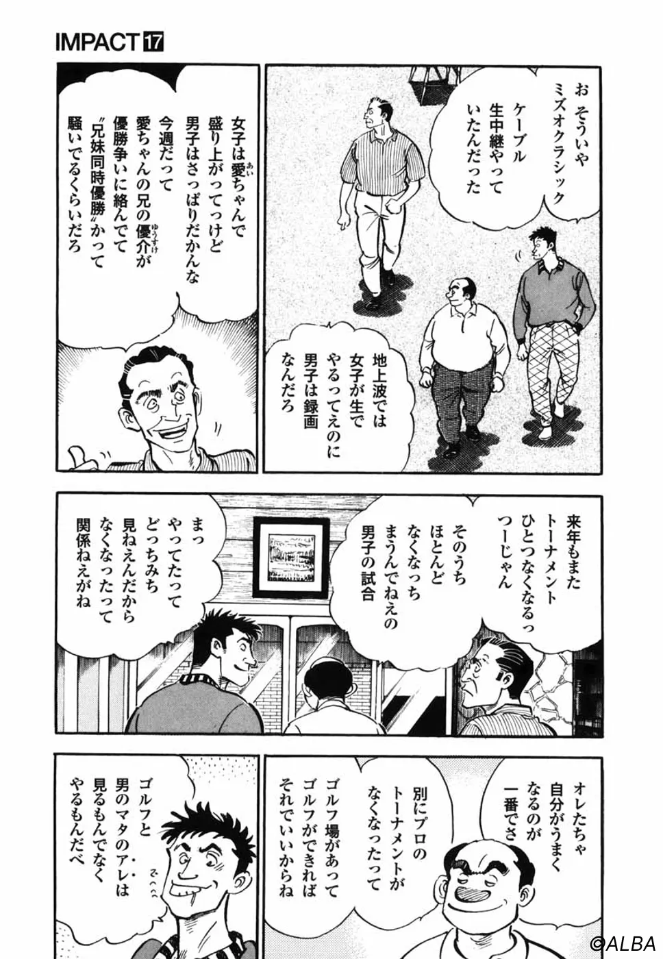 【前巻までのあらすじ】マンデーを勝ち抜き「ミズオクラシック」参戦を決めた一丸。本戦3日目、ジャンボ尾関がマッチプレーを仕掛けてきた!ジャンボの技に魅せられた一丸は、勝負にのめり込んでいく。するとジャンボから賭けを持ちかけられ、ジャンボが勝ったら一丸が刀鍛冶師時代に長年打ち込んで、今なお作り上げることの出来ない「古名刀」の写しを一振り作ること、一丸が勝ったらジャンボはプロゴルフ界を引退することを了承する。言うなれば、どちらかがゴルフやめなくてはならないということ。お互い土壇場勝負、絶対に負けられない。