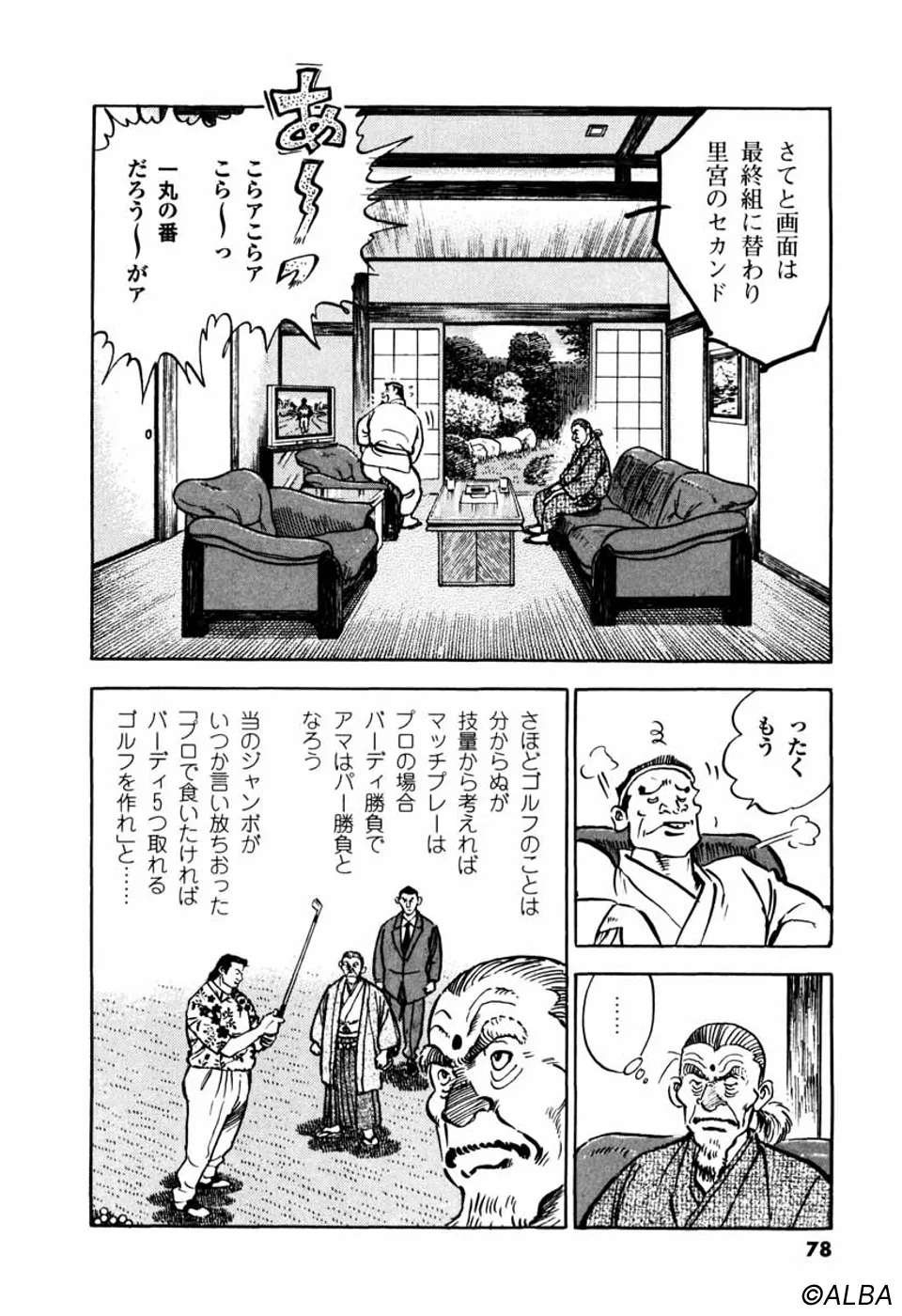 【第18巻あらすじ】ジャンボ尾関VS.鳴海一丸のゴルフ真剣勝負がついに決着。ストロークプレーのプロトーナメントであるにもかかわらず、二人の対決にギャラリーも大興奮。最終18番ホールにジャンボの、一丸の、男の意地が激突。ゴルフの醍醐味が満載の刊。