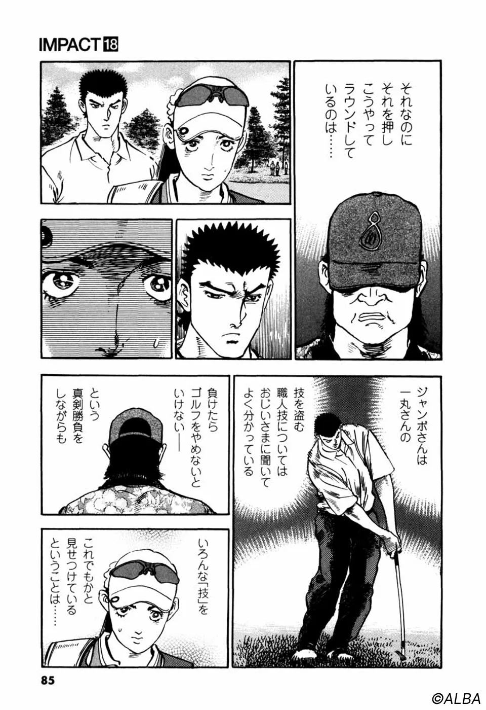 【第18巻あらすじ】ジャンボ尾関VS.鳴海一丸のゴルフ真剣勝負がついに決着。ストロークプレーのプロトーナメントであるにもかかわらず、二人の対決にギャラリーも大興奮。最終18番ホールにジャンボの、一丸の、男の意地が激突。ゴルフの醍醐味が満載の刊。