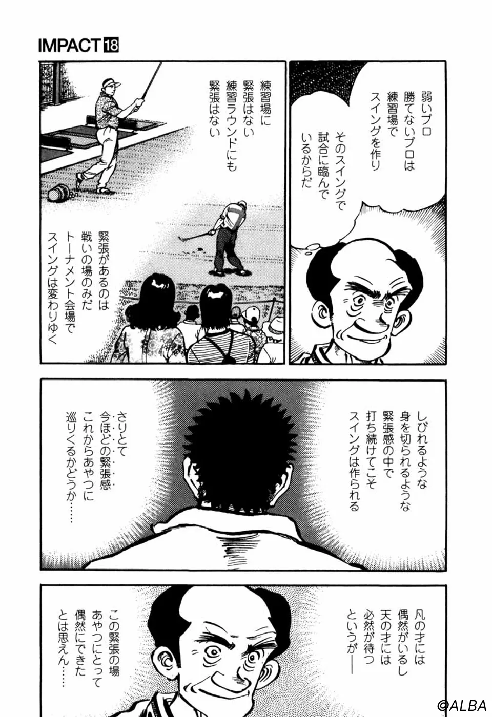 【第18巻あらすじ】ジャンボ尾関VS.鳴海一丸のゴルフ真剣勝負がついに決着。ストロークプレーのプロトーナメントであるにもかかわらず、二人の対決にギャラリーも大興奮。最終18番ホールにジャンボの、一丸の、男の意地が激突。ゴルフの醍醐味が満載の刊。