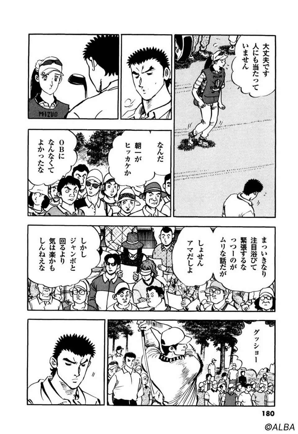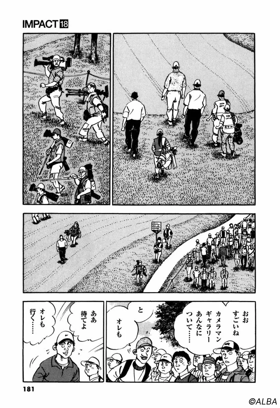 【第18巻あらすじ】ジャンボ尾関VS.鳴海一丸のゴルフ真剣勝負がついに決着。ストロークプレーのプロトーナメントであるにもかかわらず、二人の対決にギャラリーも大興奮。最終18番ホールにジャンボの、一丸の、男の意地が激突。ゴルフの醍醐味が満載の刊。