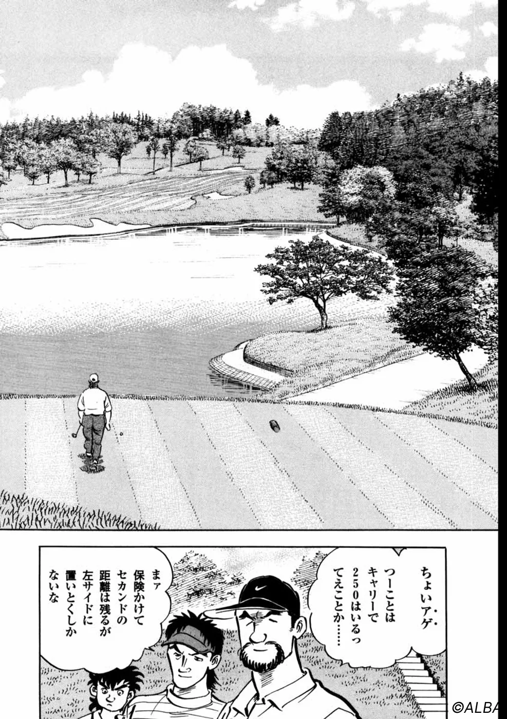 【前巻までのあらすじ】日本アマ出場の切符を巡り、関東アマの決勝が始まった。女子の部に出場した仙道桂はかろうじて日本アマへの出場を決める。一方、プロへの並外れた執着心をもつ一平と、日本アマで御園と対決することに強い決意を持つ一丸は好スタート。しかし一丸の才能に目をつけた同じ組のベテランアマゴルファー・力石が一丸に様々な方法でテクニック勝負を仕掛けてくる。今までの激戦で学んだ技術を駆使し、力石の挑発を乗り越える一丸だったが、力石の挑発はさらにエスカレートしていく。
