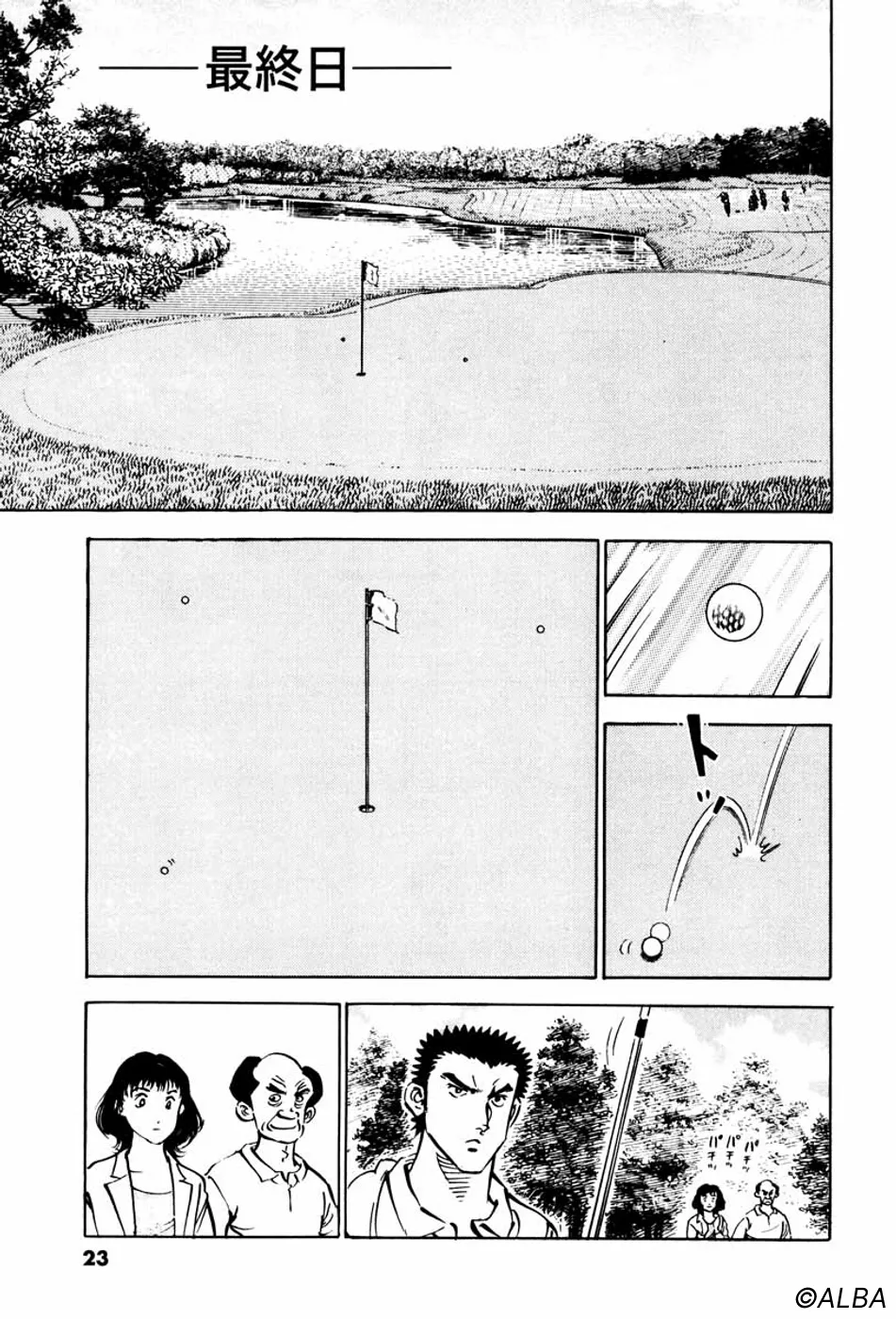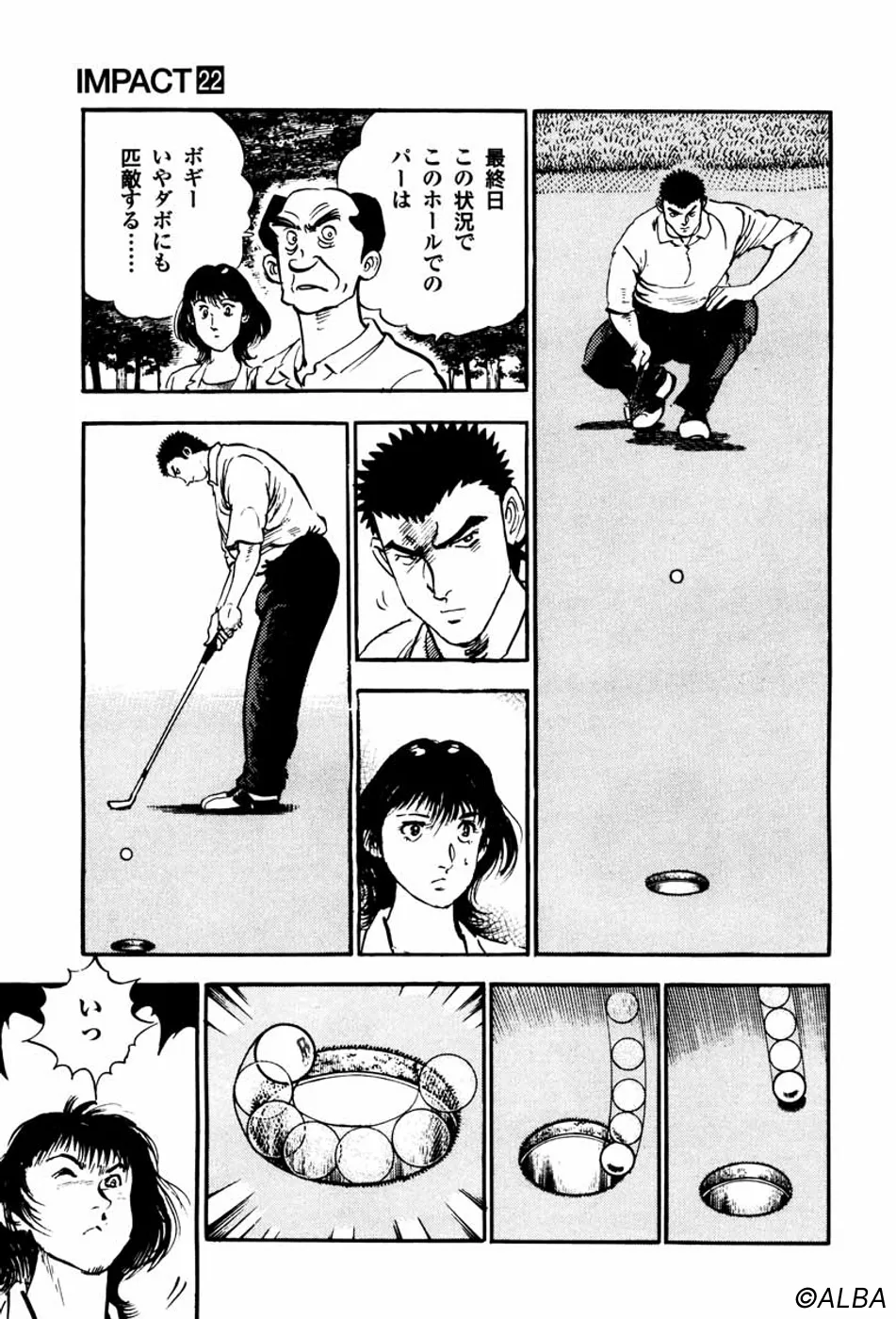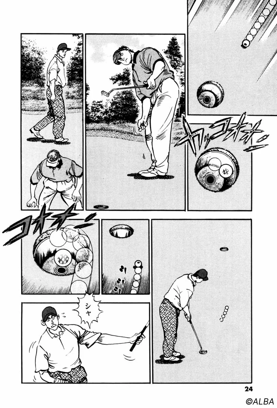 【第22巻あらすじ】関東アマ初日、ベテランアマ・力石の「仕掛け」にはまり、81というスコアをたたいてしまった一丸だが、2日目からプロはだしのショットを次々と決め、上位に進出。日本アマ出場がかかった33位以内をめざして、ショットが冴えてきた。