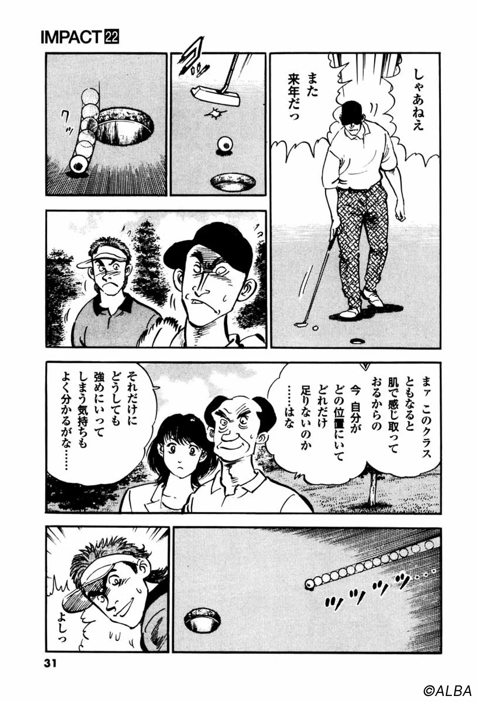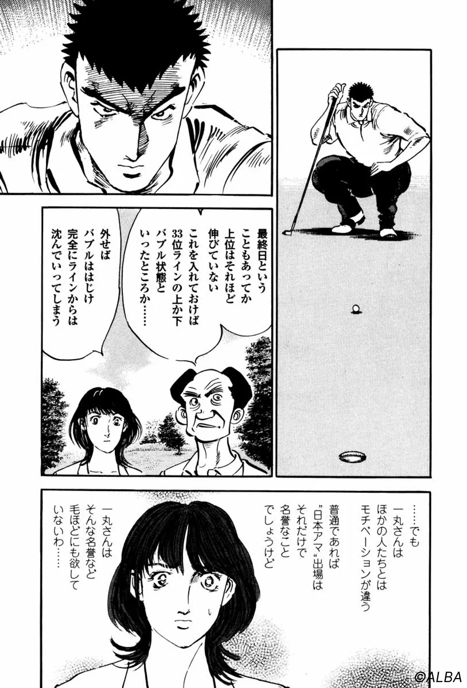 【第22巻あらすじ】関東アマ初日、ベテランアマ・力石の「仕掛け」にはまり、81というスコアをたたいてしまった一丸だが、2日目からプロはだしのショットを次々と決め、上位に進出。日本アマ出場がかかった33位以内をめざして、ショットが冴えてきた。