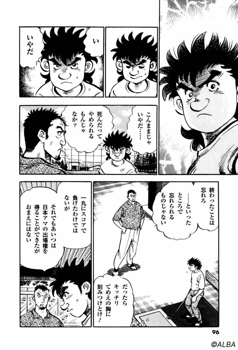 【第22巻あらすじ】関東アマ初日、ベテランアマ・力石の「仕掛け」にはまり、81というスコアをたたいてしまった一丸だが、2日目からプロはだしのショットを次々と決め、上位に進出。日本アマ出場がかかった33位以内をめざして、ショットが冴えてきた。