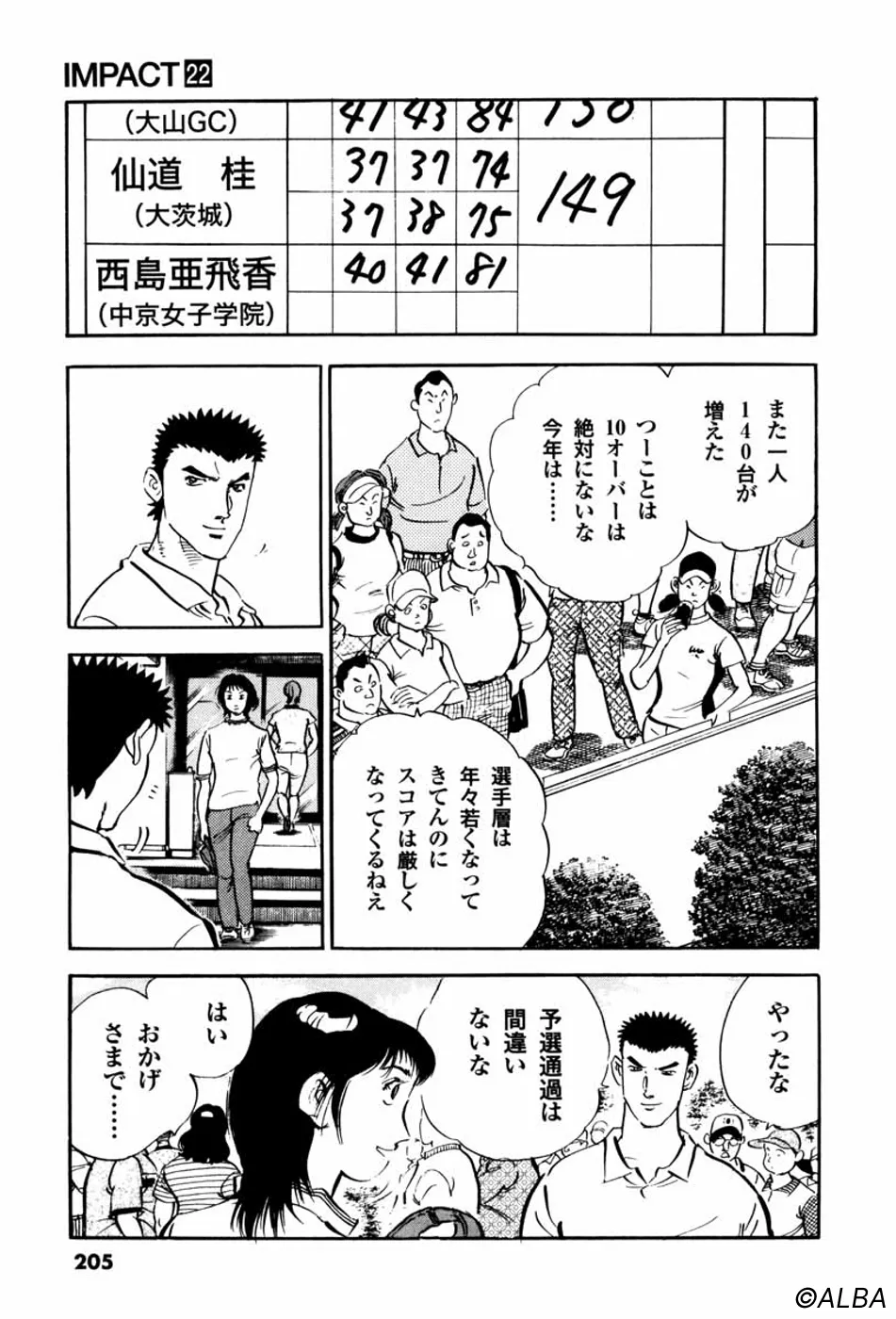 【第22巻あらすじ】関東アマ初日、ベテランアマ・力石の「仕掛け」にはまり、81というスコアをたたいてしまった一丸だが、2日目からプロはだしのショットを次々と決め、上位に進出。日本アマ出場がかかった33位以内をめざして、ショットが冴えてきた。