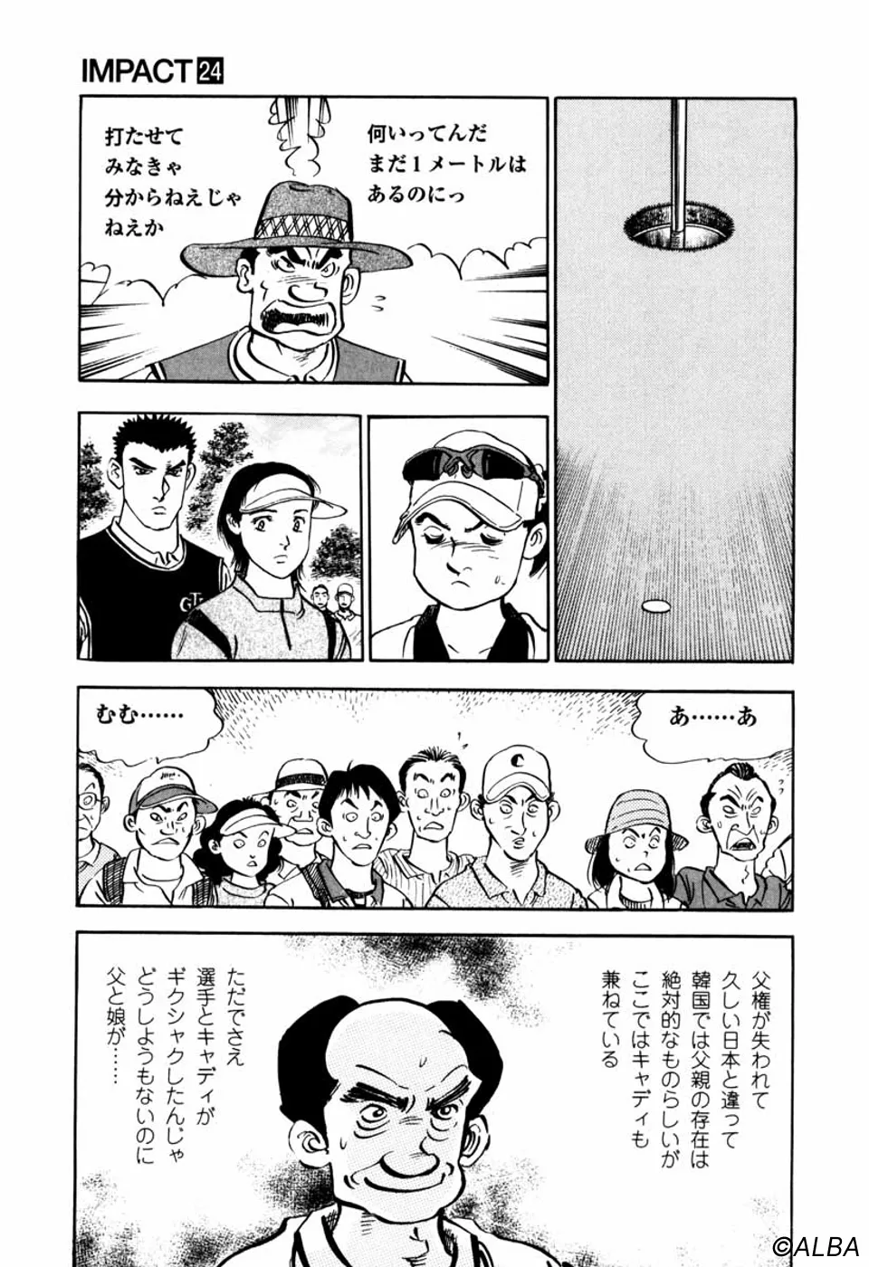 【第24巻あらすじ】日本女子アマで仙道桂のキャディを務める鳴海一丸。二人の次なる相手は、なんと韓国女子アマチャンピオン・金美姫。マッチプレー2回戦。一進一退の攻防はついにエクストラホールに突入する。体力勝負となった戦いに桂は耐えられるか。激闘決着。