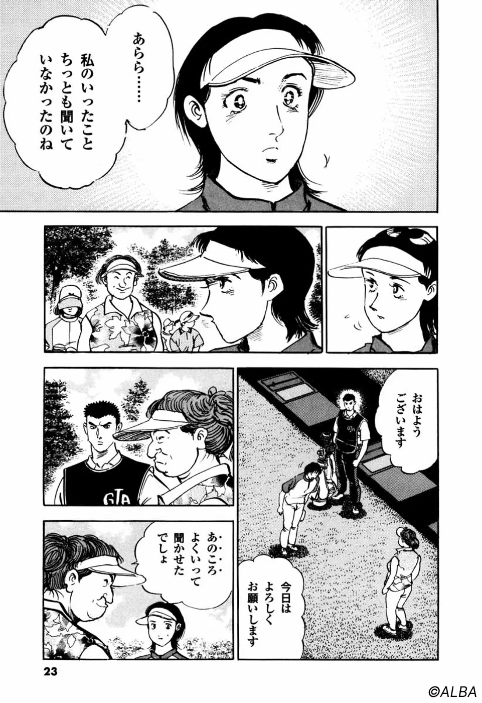 【第25巻あらすじ】韓国女子アマチャンピオン・金美姫をプレーオフ7ホール目で破り、日本女子アマでベスト8に進出した仙道桂。キャディの一丸もマッチプレーの切るか切られるかの雰囲気に気合いが乗ってきた。次なる相手は大ベテランの安田千代。マッチプレーの熱戦は続く。