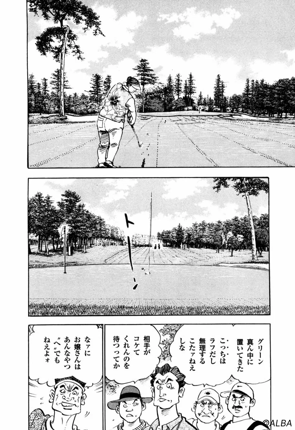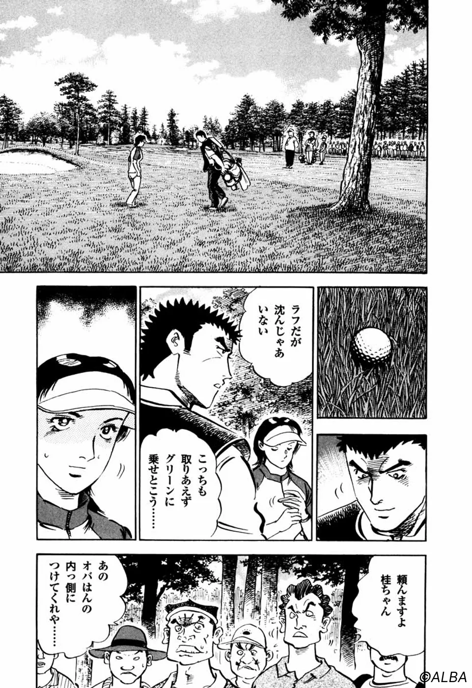 【第25巻あらすじ】韓国女子アマチャンピオン・金美姫をプレーオフ7ホール目で破り、日本女子アマでベスト8に進出した仙道桂。キャディの一丸もマッチプレーの切るか切られるかの雰囲気に気合いが乗ってきた。次なる相手は大ベテランの安田千代。マッチプレーの熱戦は続く。