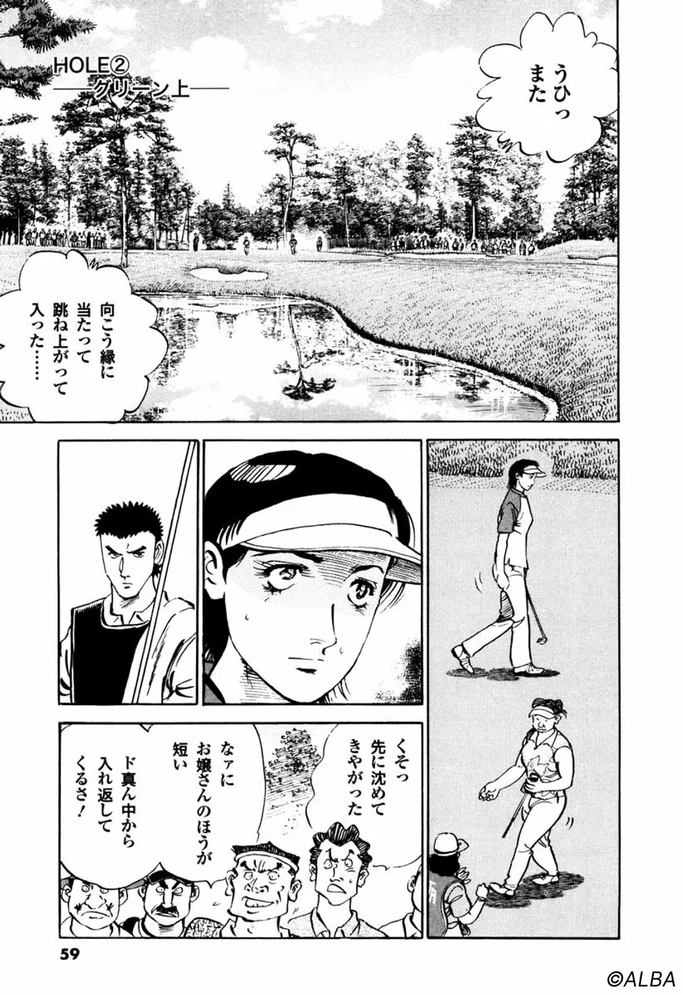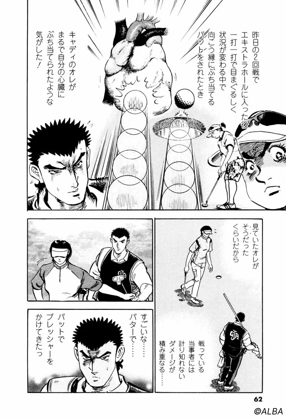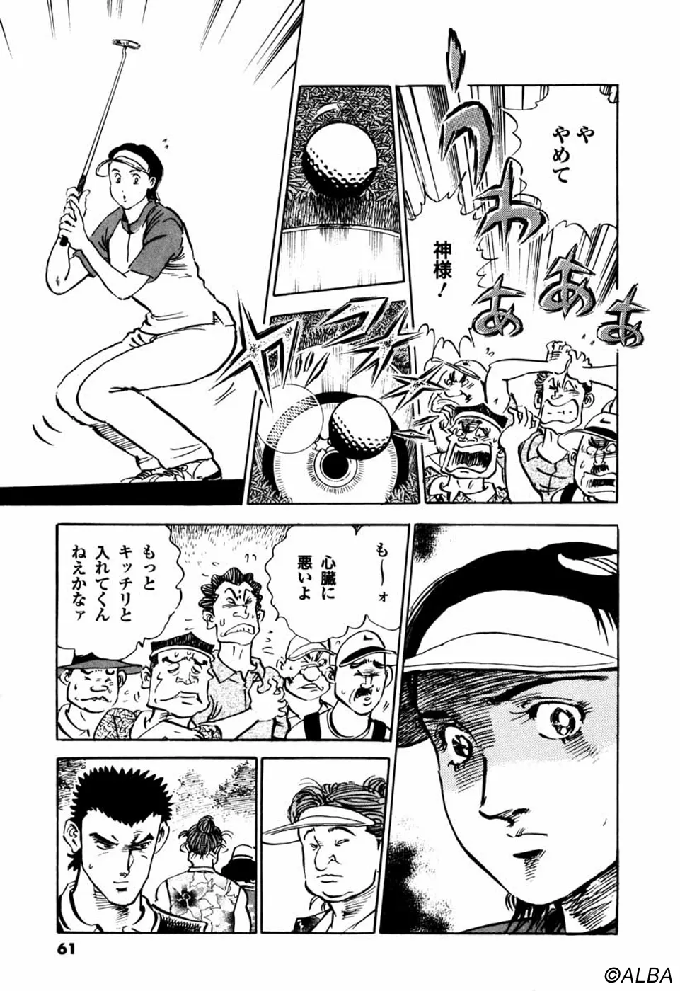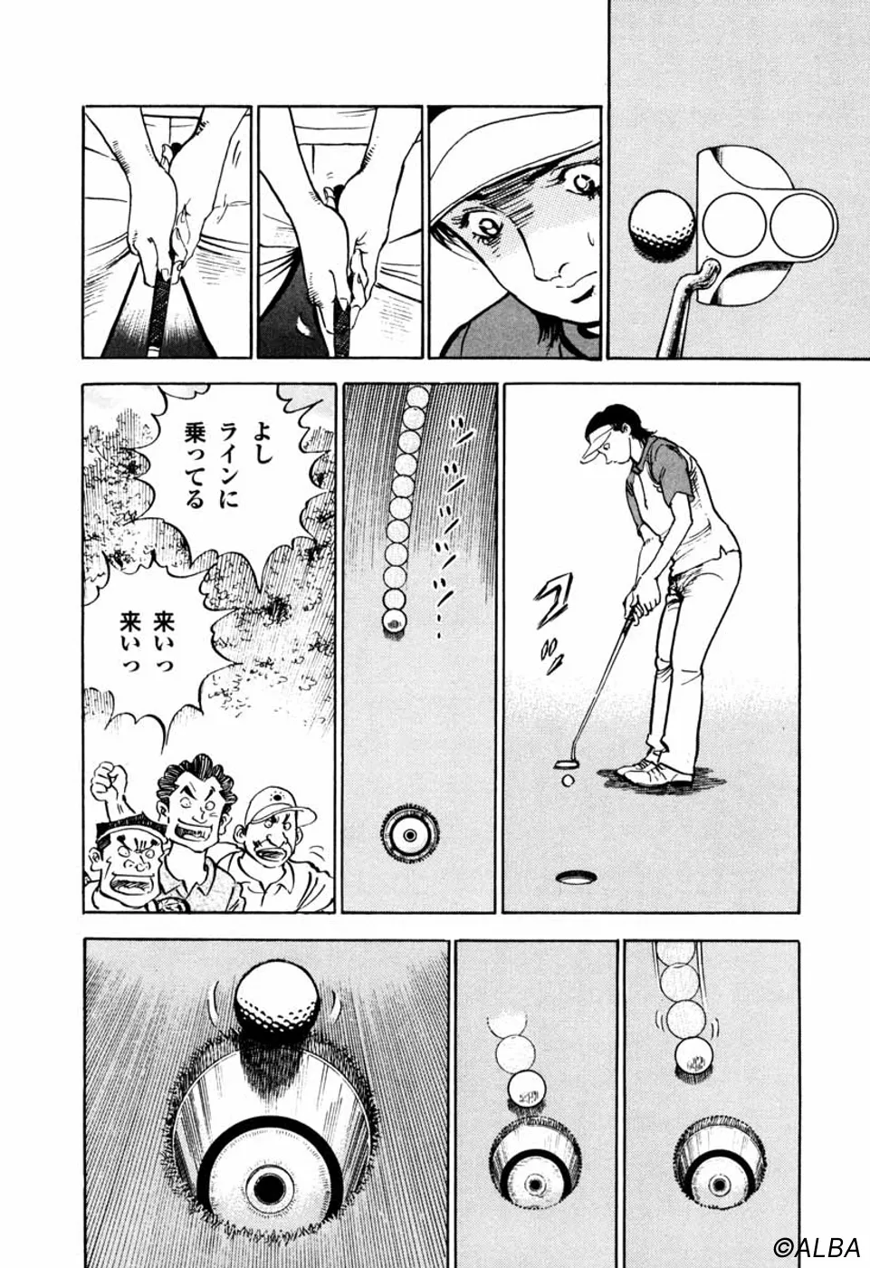 【第25巻あらすじ】韓国女子アマチャンピオン・金美姫をプレーオフ7ホール目で破り、日本女子アマでベスト8に進出した仙道桂。キャディの一丸もマッチプレーの切るか切られるかの雰囲気に気合いが乗ってきた。次なる相手は大ベテランの安田千代。マッチプレーの熱戦は続く。