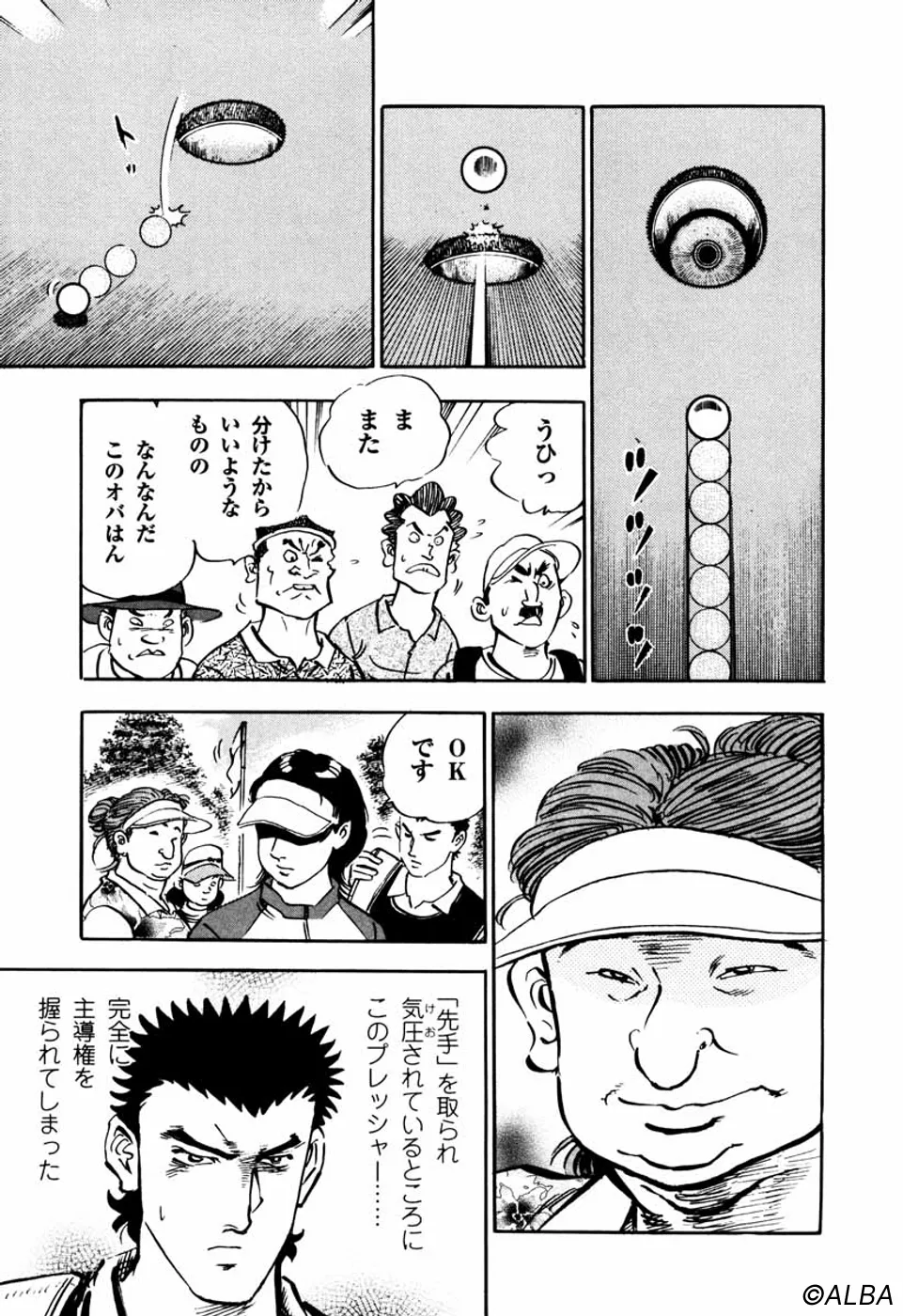 【第25巻あらすじ】韓国女子アマチャンピオン・金美姫をプレーオフ7ホール目で破り、日本女子アマでベスト8に進出した仙道桂。キャディの一丸もマッチプレーの切るか切られるかの雰囲気に気合いが乗ってきた。次なる相手は大ベテランの安田千代。マッチプレーの熱戦は続く。