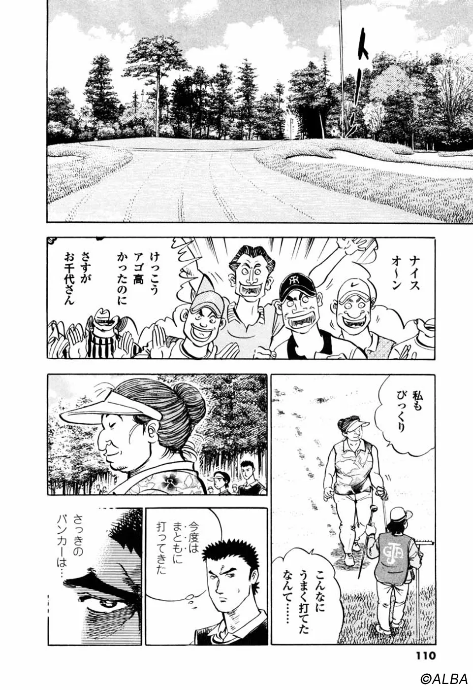 【第25巻あらすじ】韓国女子アマチャンピオン・金美姫をプレーオフ7ホール目で破り、日本女子アマでベスト8に進出した仙道桂。キャディの一丸もマッチプレーの切るか切られるかの雰囲気に気合いが乗ってきた。次なる相手は大ベテランの安田千代。マッチプレーの熱戦は続く。