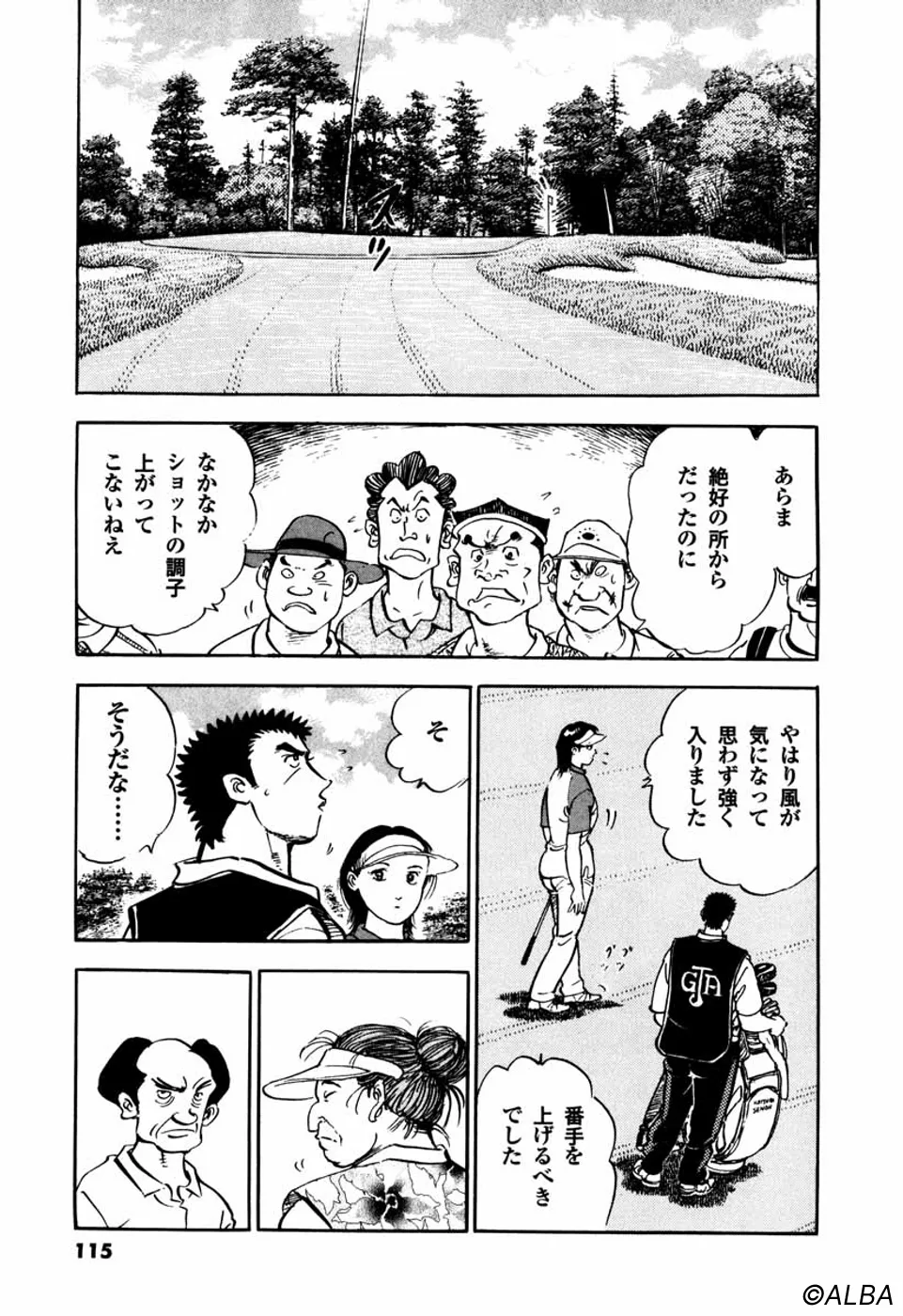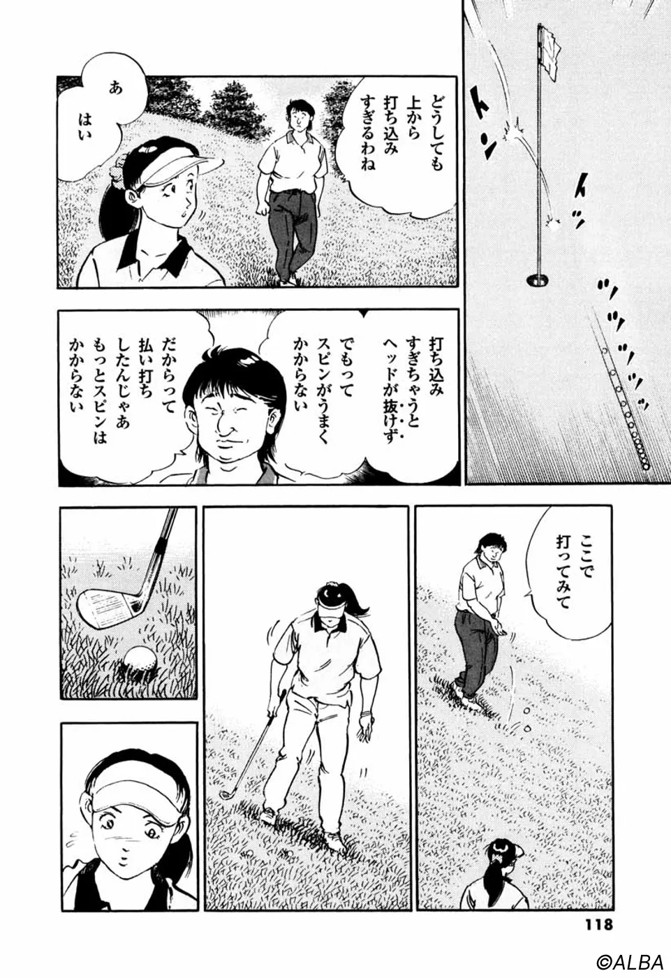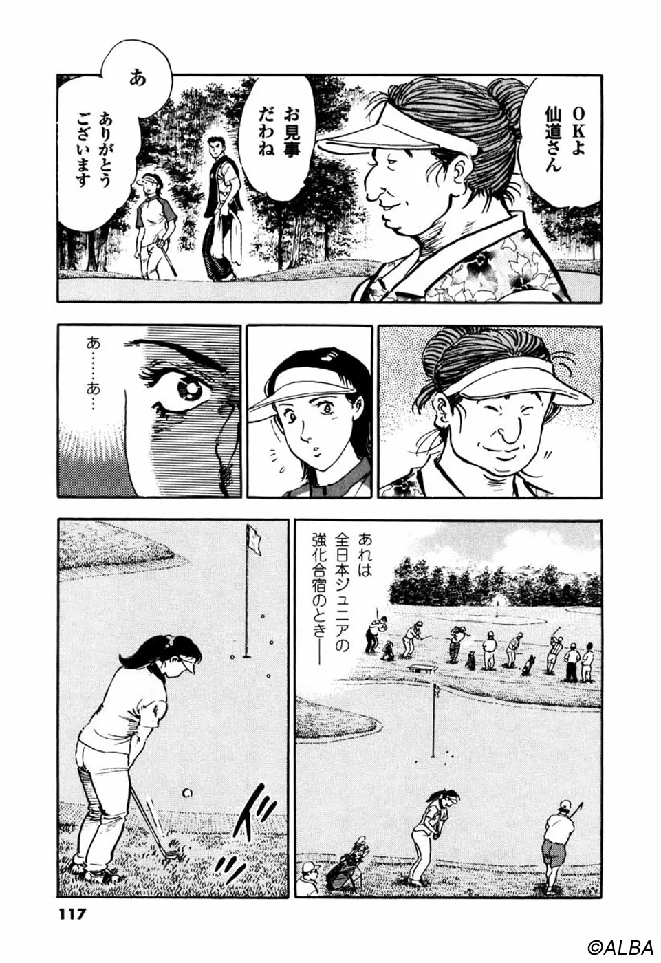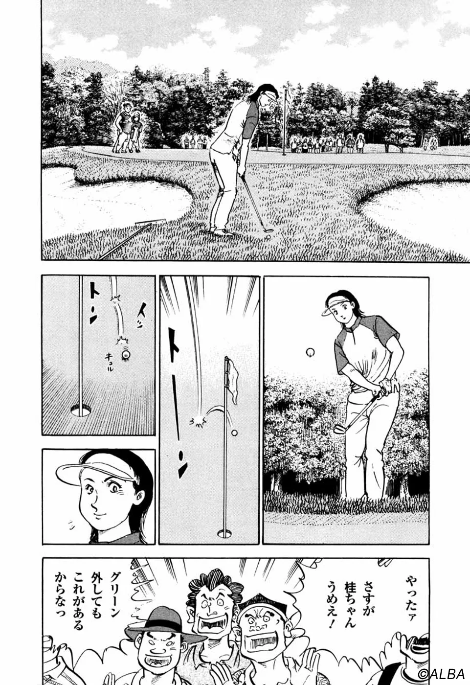 【第25巻あらすじ】韓国女子アマチャンピオン・金美姫をプレーオフ7ホール目で破り、日本女子アマでベスト8に進出した仙道桂。キャディの一丸もマッチプレーの切るか切られるかの雰囲気に気合いが乗ってきた。次なる相手は大ベテランの安田千代。マッチプレーの熱戦は続く。