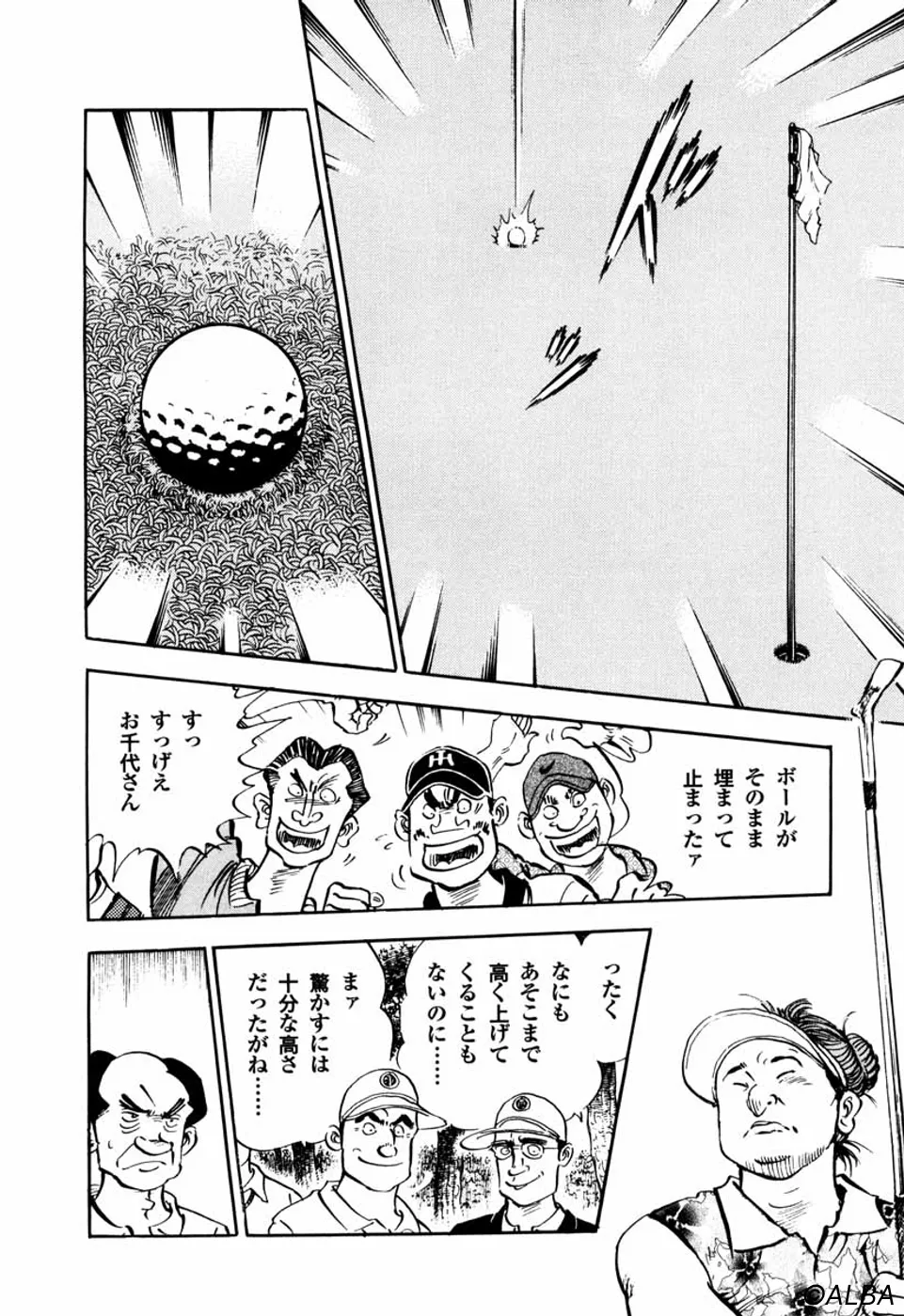 【第25巻あらすじ】韓国女子アマチャンピオン・金美姫をプレーオフ7ホール目で破り、日本女子アマでベスト8に進出した仙道桂。キャディの一丸もマッチプレーの切るか切られるかの雰囲気に気合いが乗ってきた。次なる相手は大ベテランの安田千代。マッチプレーの熱戦は続く。