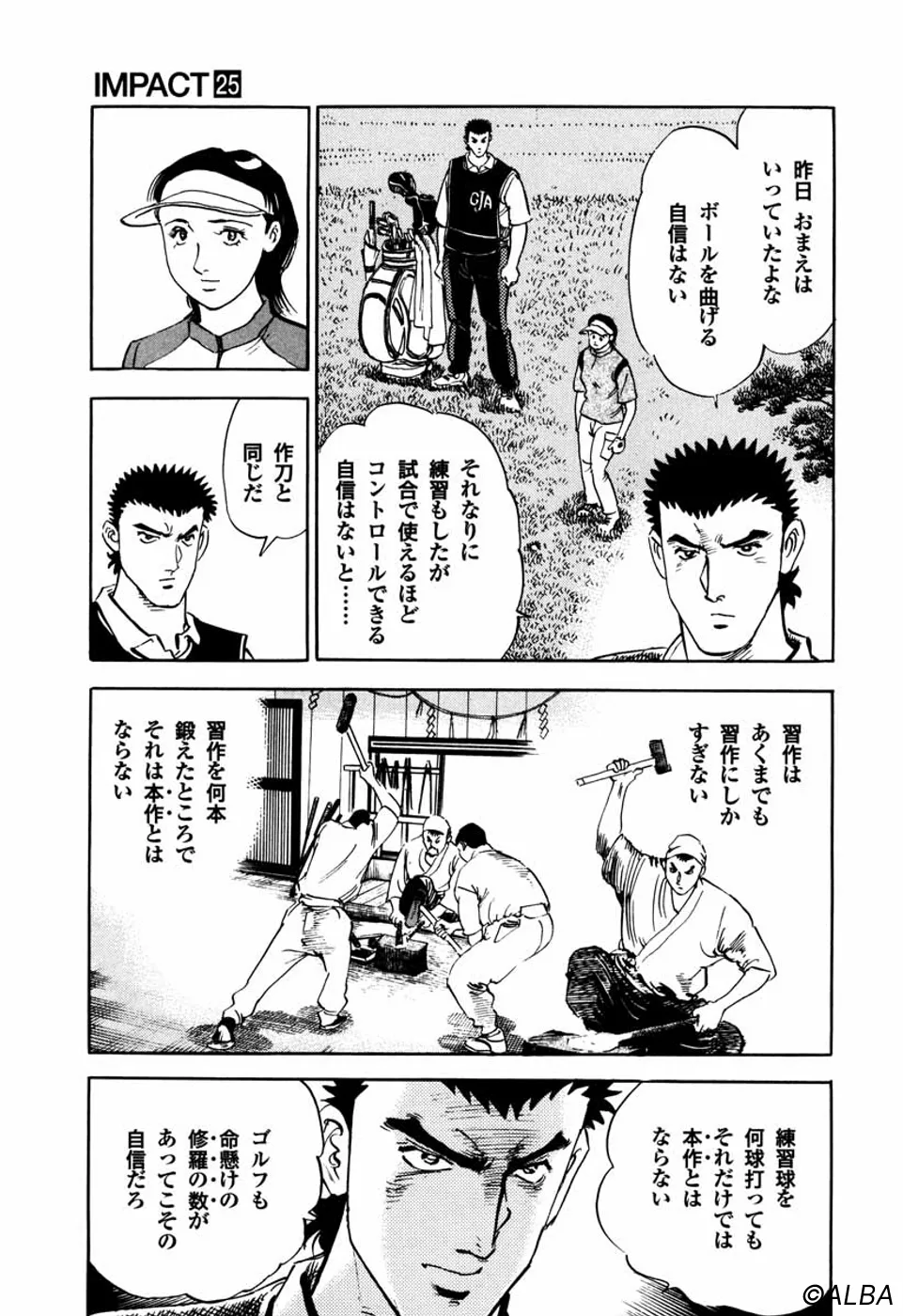 【第25巻あらすじ】韓国女子アマチャンピオン・金美姫をプレーオフ7ホール目で破り、日本女子アマでベスト8に進出した仙道桂。キャディの一丸もマッチプレーの切るか切られるかの雰囲気に気合いが乗ってきた。次なる相手は大ベテランの安田千代。マッチプレーの熱戦は続く。