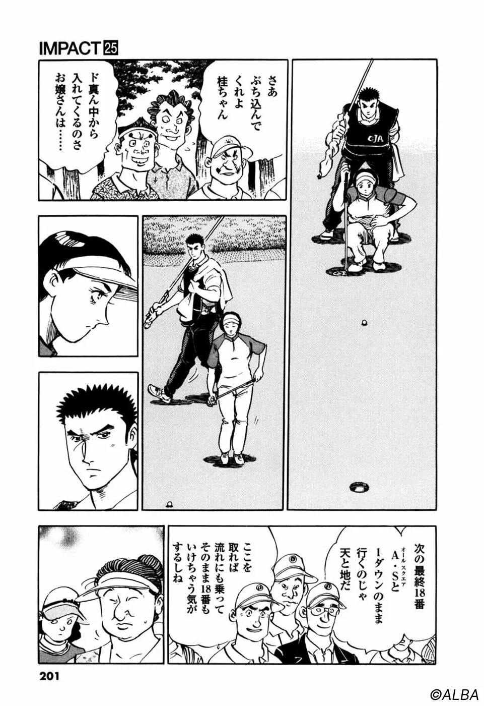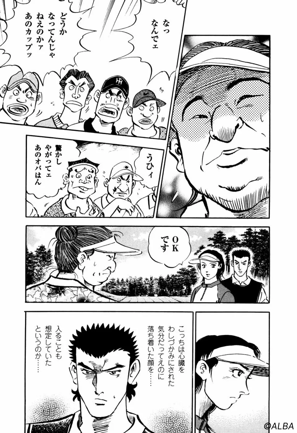 【第25巻あらすじ】韓国女子アマチャンピオン・金美姫をプレーオフ7ホール目で破り、日本女子アマでベスト8に進出した仙道桂。キャディの一丸もマッチプレーの切るか切られるかの雰囲気に気合いが乗ってきた。次なる相手は大ベテランの安田千代。マッチプレーの熱戦は続く。
