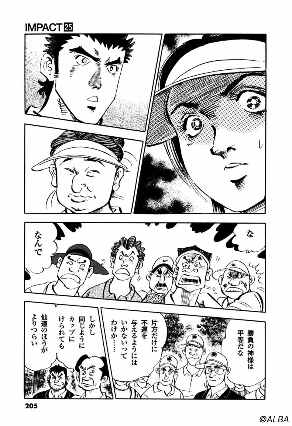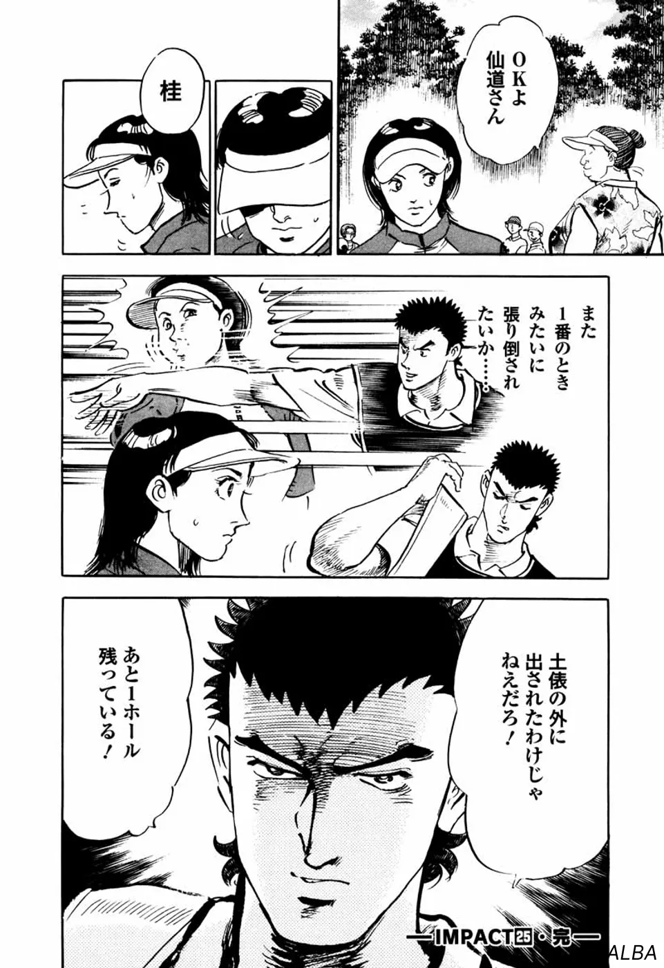 【第25巻あらすじ】韓国女子アマチャンピオン・金美姫をプレーオフ7ホール目で破り、日本女子アマでベスト8に進出した仙道桂。キャディの一丸もマッチプレーの切るか切られるかの雰囲気に気合いが乗ってきた。次なる相手は大ベテランの安田千代。マッチプレーの熱戦は続く。