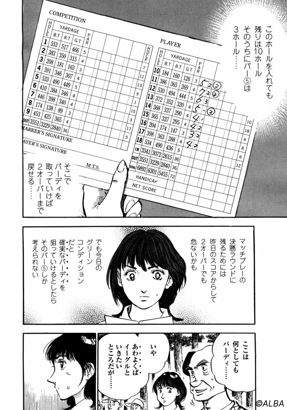 【前巻までのあらすじ】決勝マッチプレー進出に向け、スコアを縮めていきたい一丸だったが、思うようなパッティングができずにスタートダッシュに失敗する。一方、ライバルの御園は初日を練習ラウンドと割り切り、IPどおりにコースを攻めるという日本アマ本戦とは思えない余裕を見せる。そして迎えた二日目。キャディを務める一平が、前日に購入したウェッジを一丸のバッグに入れたまま、スタートしてしまうという凡ミスを犯す。まさかの4打罰を受けてしまった一丸は、決勝ラウンド進出が一気に遠ざかってしまったのだった。