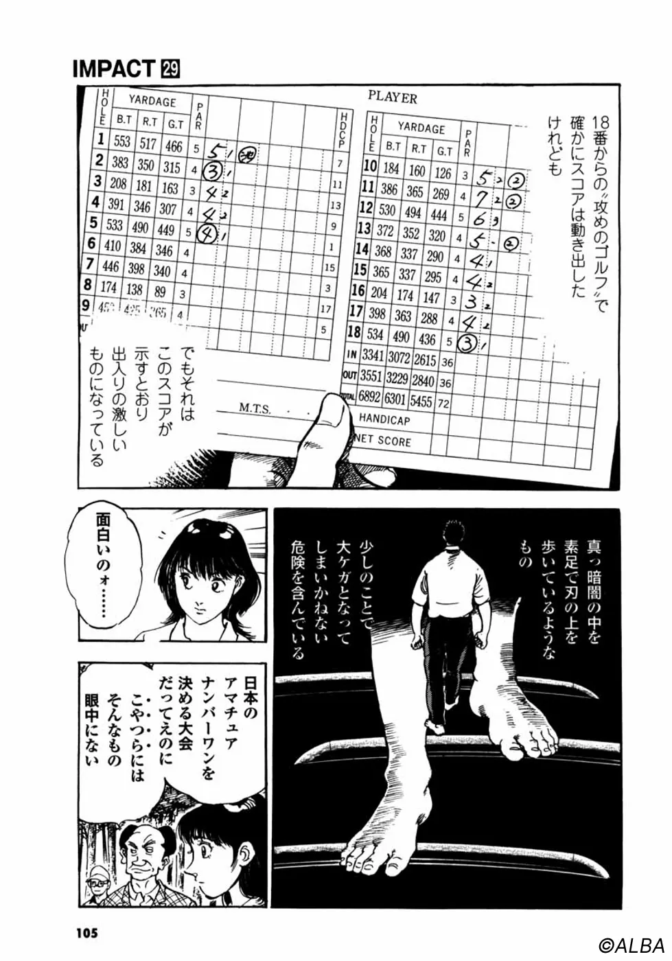 【第29巻あらすじ】日本アマチュア選手権予選。一平のミスなどにより、開始4ホールで7オーバーしてしまった一丸。しかし、心を折ることなく予選通過に向けて、一平との絶妙なコンビネーションでスコアを縮めていく。一方御園は、一丸の状況を気にしながらも軽々と予選通過する。