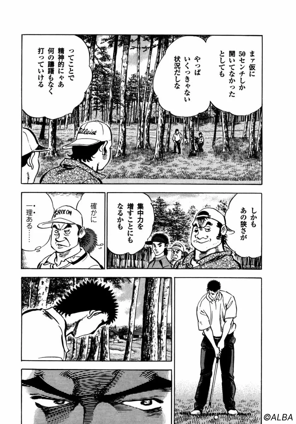 【前巻までのあらすじ】決勝マッチプレー進出に向け、スコアを縮めていきたい一丸だったが、思うようなパッティングができずにスタートダッシュに失敗する。一方、ライバルの御園は初日を練習ラウンドと割り切り、IPどおりにコースを攻めるという日本アマ本戦とは思えない余裕を見せる。そして迎えた二日目。キャディを務める一平が、前日に購入したウェッジを一丸のバッグに入れたまま、スタートしてしまうという凡ミスを犯す。まさかの4打罰を受けてしまった一丸は、決勝ラウンド進出が一気に遠ざかってしまったのだった。