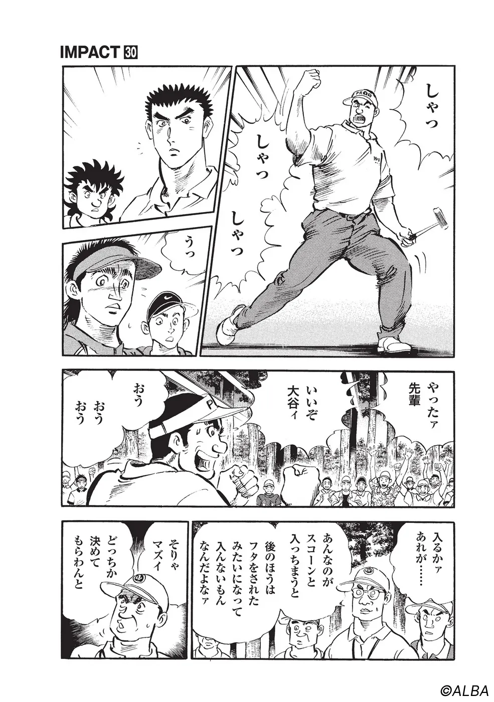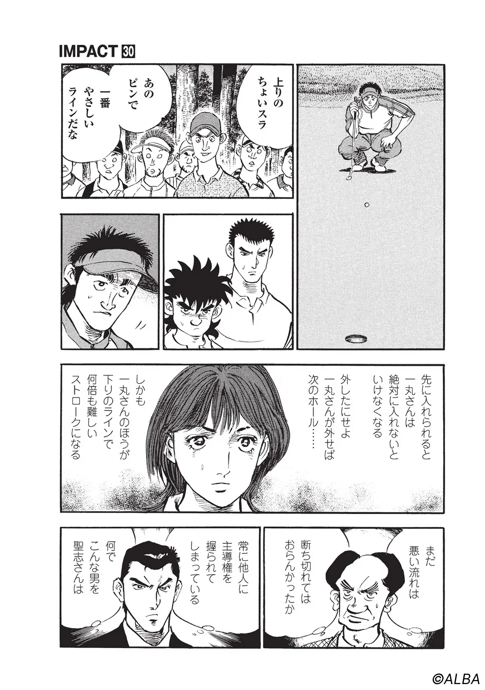 【第30巻あらすじ】日本アマチュア選手権予選。キャディを務めた一平の「クラブ超過」というミスにより、4罰打という重いハンディを背負うことになる。思わぬ苦戦を強いられることとなった一丸だったが、その後スコアを縮めていき決勝を賭けたプレーオフへと進出する。