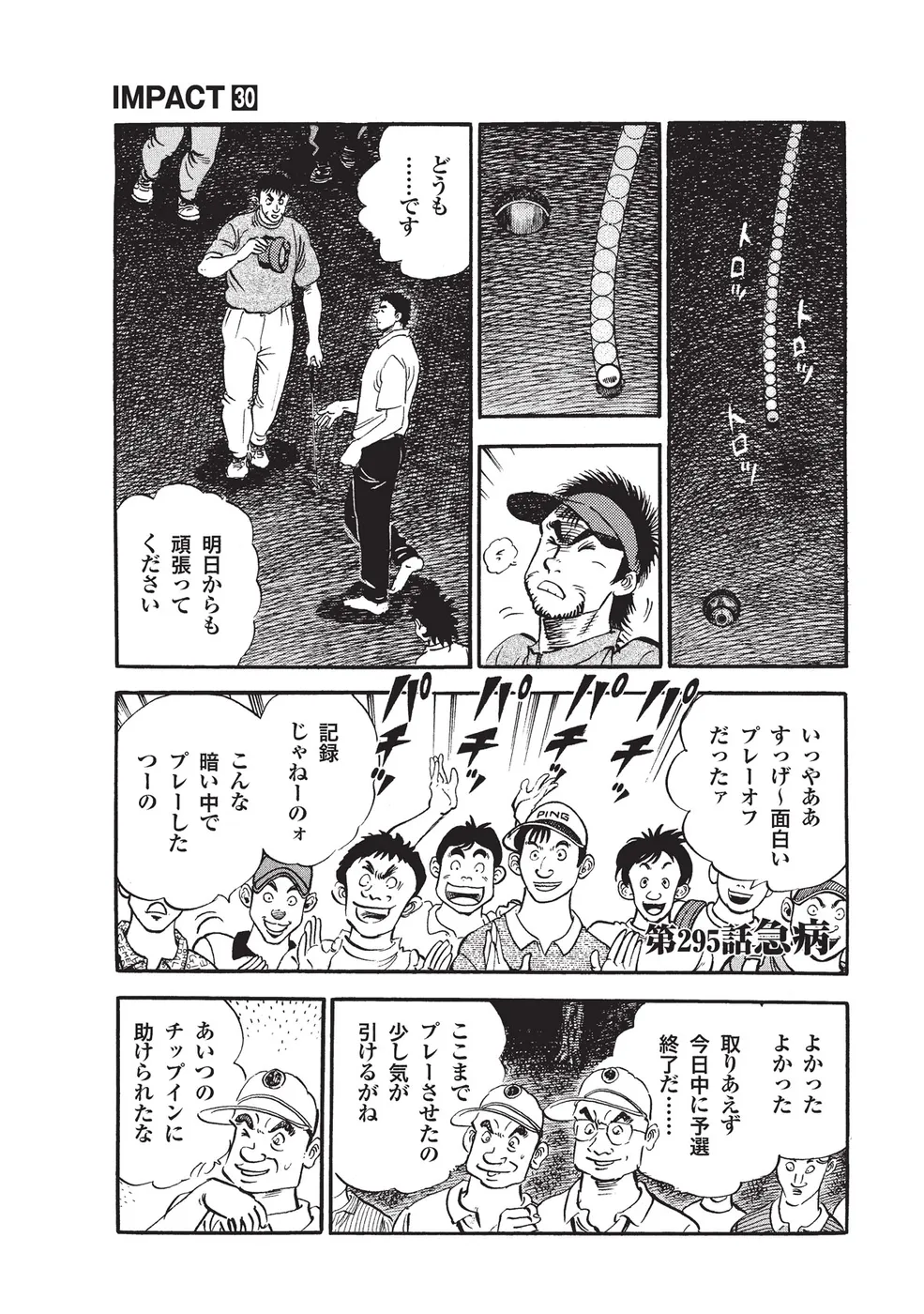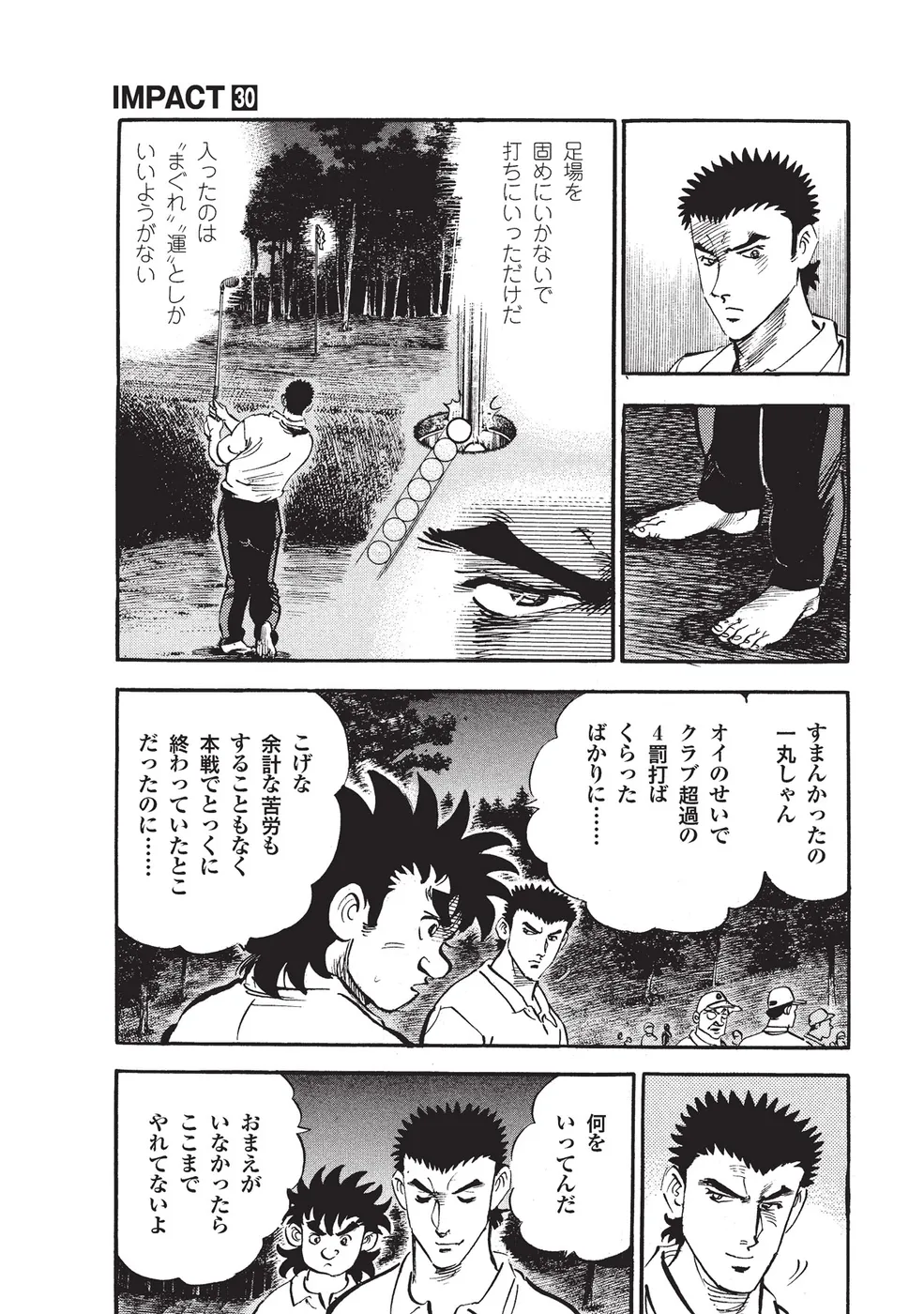 【第30巻あらすじ】日本アマチュア選手権予選。キャディを務めた一平の「クラブ超過」というミスにより、4罰打という重いハンディを背負うことになる。思わぬ苦戦を強いられることとなった一丸だったが、その後スコアを縮めていき決勝を賭けたプレーオフへと進出する。
