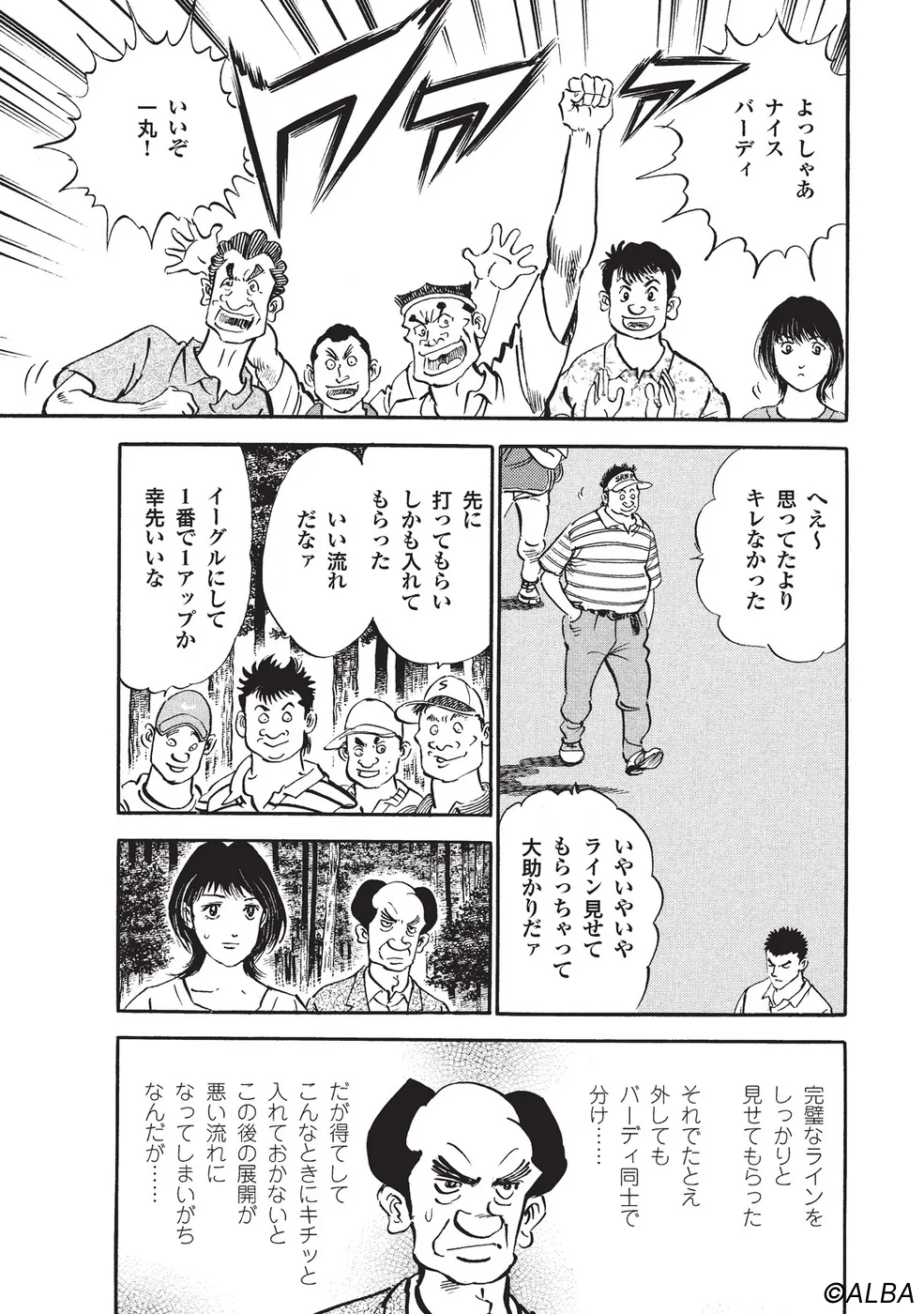 【第30巻あらすじ】日本アマチュア選手権予選。キャディを務めた一平の「クラブ超過」というミスにより、4罰打という重いハンディを背負うことになる。思わぬ苦戦を強いられることとなった一丸だったが、その後スコアを縮めていき決勝を賭けたプレーオフへと進出する。