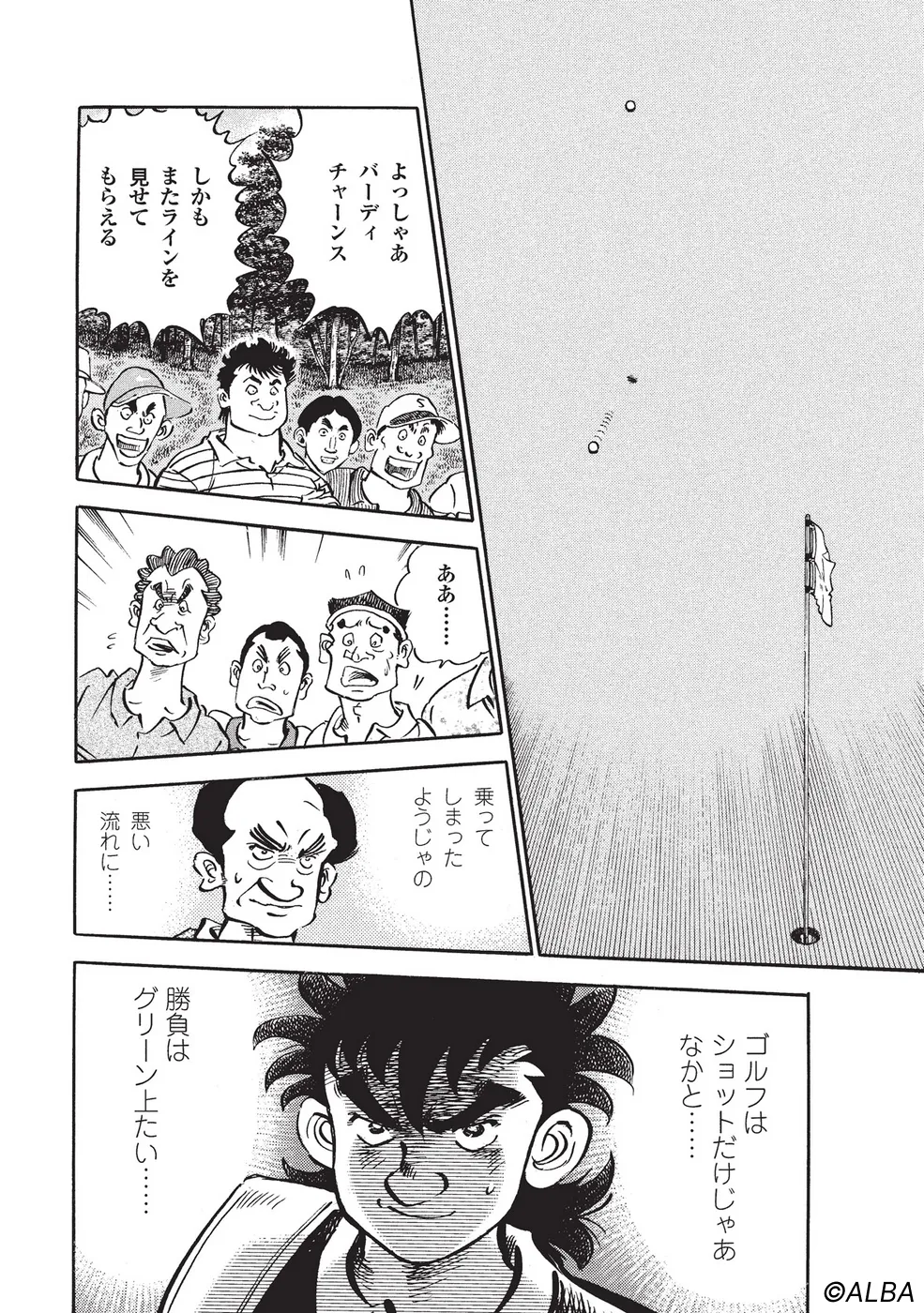 【第30巻あらすじ】日本アマチュア選手権予選。キャディを務めた一平の「クラブ超過」というミスにより、4罰打という重いハンディを背負うことになる。思わぬ苦戦を強いられることとなった一丸だったが、その後スコアを縮めていき決勝を賭けたプレーオフへと進出する。