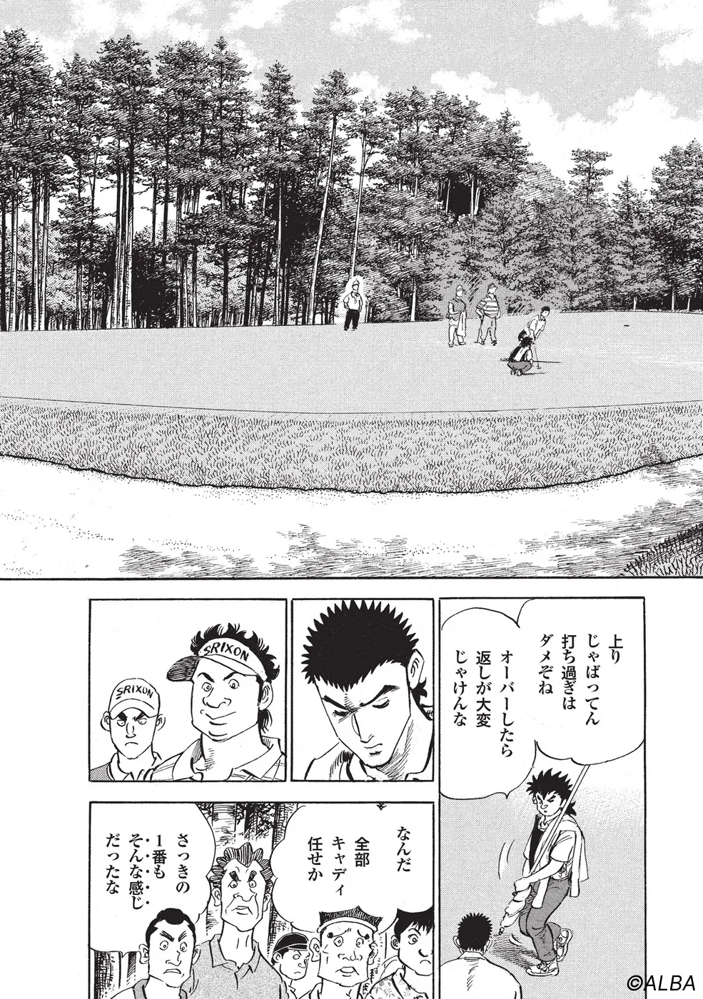 【第30巻あらすじ】日本アマチュア選手権予選。キャディを務めた一平の「クラブ超過」というミスにより、4罰打という重いハンディを背負うことになる。思わぬ苦戦を強いられることとなった一丸だったが、その後スコアを縮めていき決勝を賭けたプレーオフへと進出する。