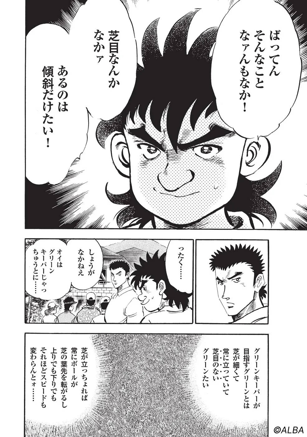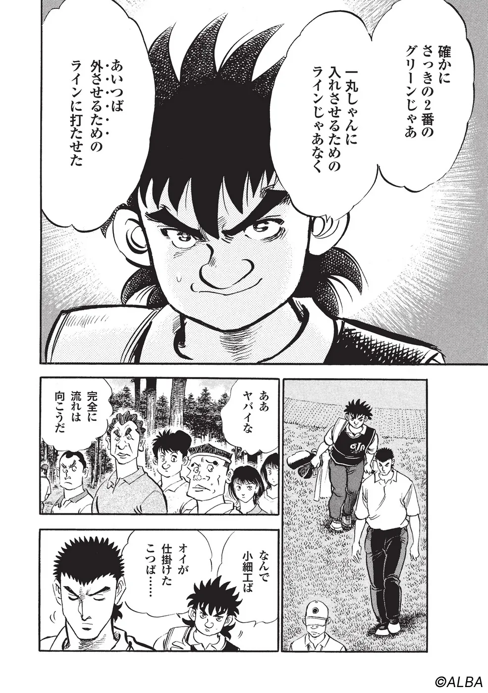 【第31巻あらすじ】日本アマチュア選手権決勝。暗闇の中行われたプレーオフを勝ち抜き、何とか決勝に進出した一丸。しかし決勝前夜、刀鍛冶の師匠が倒れたために、急きょ徹夜での作刀を依頼される。そして、一睡もできないままマッチプレー一回戦を迎えることになる。