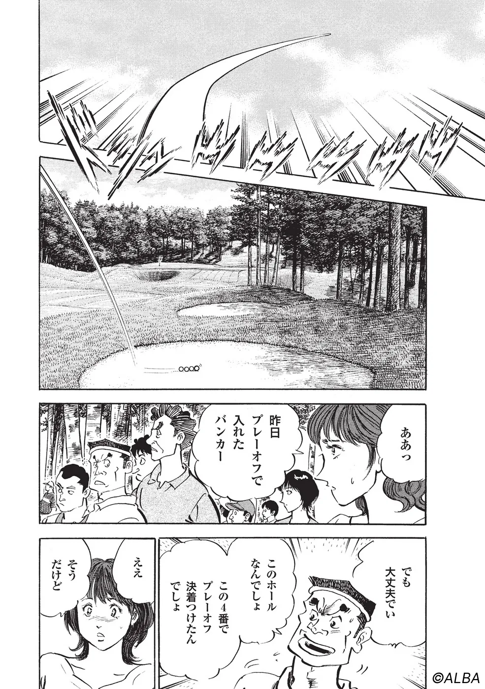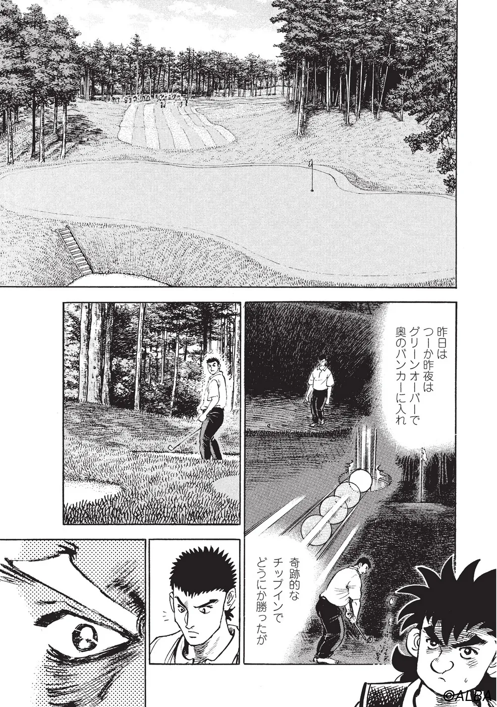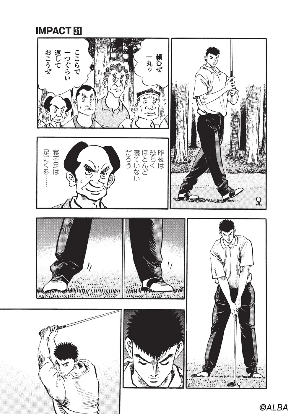 【第31巻あらすじ】日本アマチュア選手権決勝。暗闇の中行われたプレーオフを勝ち抜き、何とか決勝に進出した一丸。しかし決勝前夜、刀鍛冶の師匠が倒れたために、急きょ徹夜での作刀を依頼される。そして、一睡もできないままマッチプレー一回戦を迎えることになる。