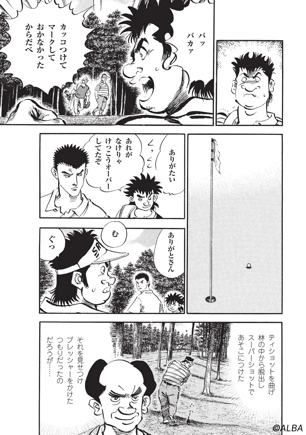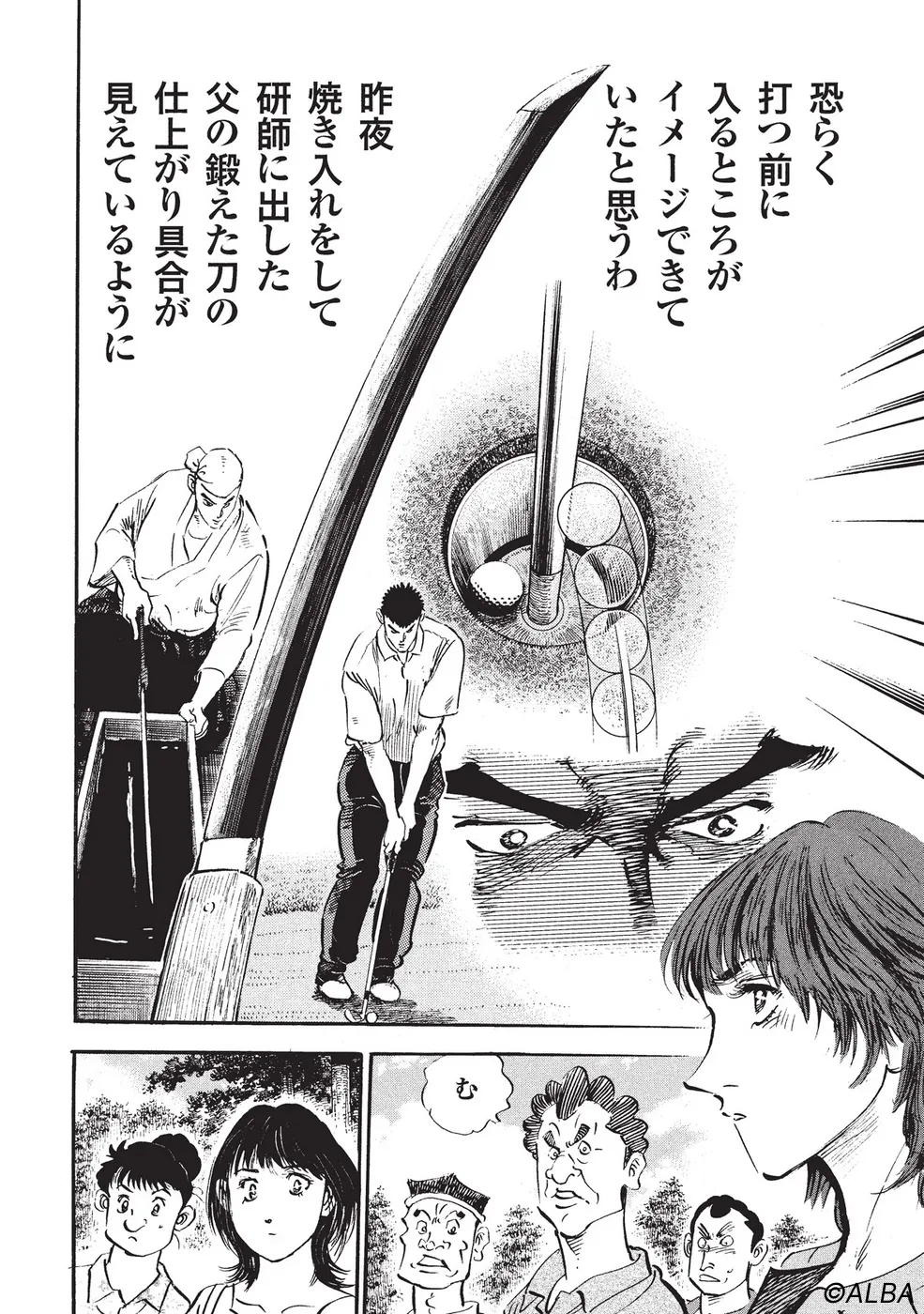 【第31巻あらすじ】日本アマチュア選手権決勝。暗闇の中行われたプレーオフを勝ち抜き、何とか決勝に進出した一丸。しかし決勝前夜、刀鍛冶の師匠が倒れたために、急きょ徹夜での作刀を依頼される。そして、一睡もできないままマッチプレー一回戦を迎えることになる。