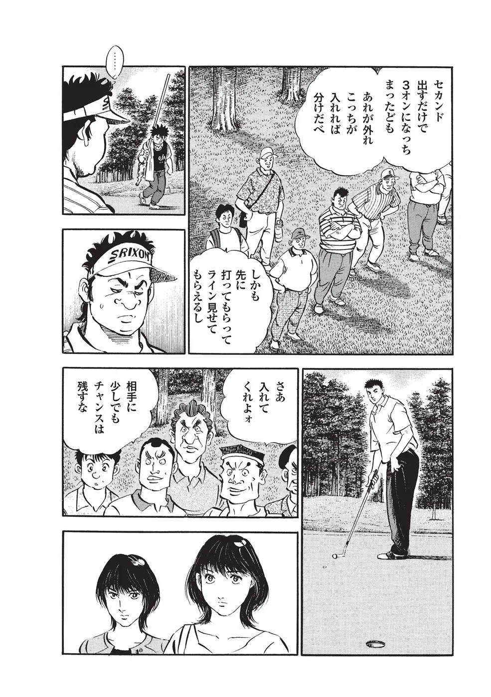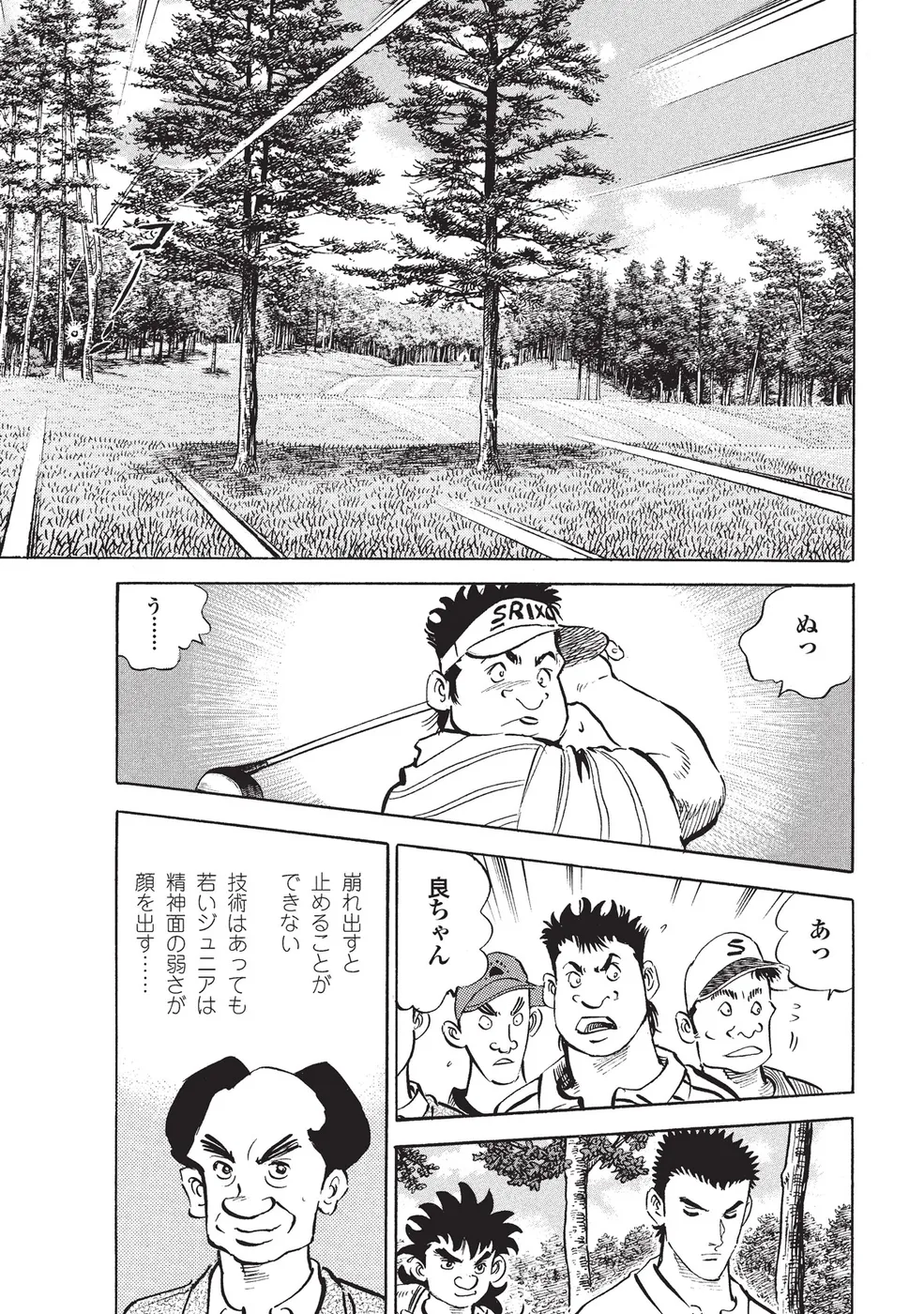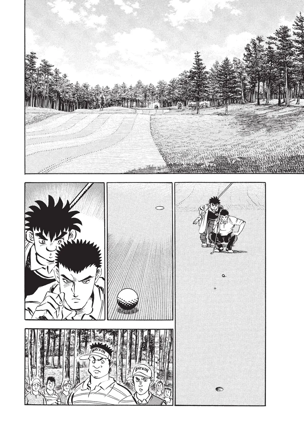 【第31巻あらすじ】日本アマチュア選手権決勝。暗闇の中行われたプレーオフを勝ち抜き、何とか決勝に進出した一丸。しかし決勝前夜、刀鍛冶の師匠が倒れたために、急きょ徹夜での作刀を依頼される。そして、一睡もできないままマッチプレー一回戦を迎えることになる。