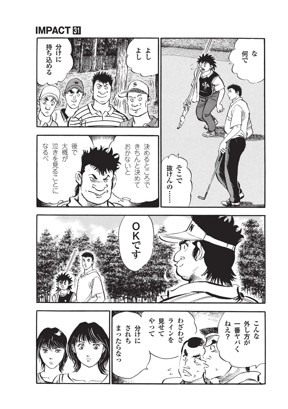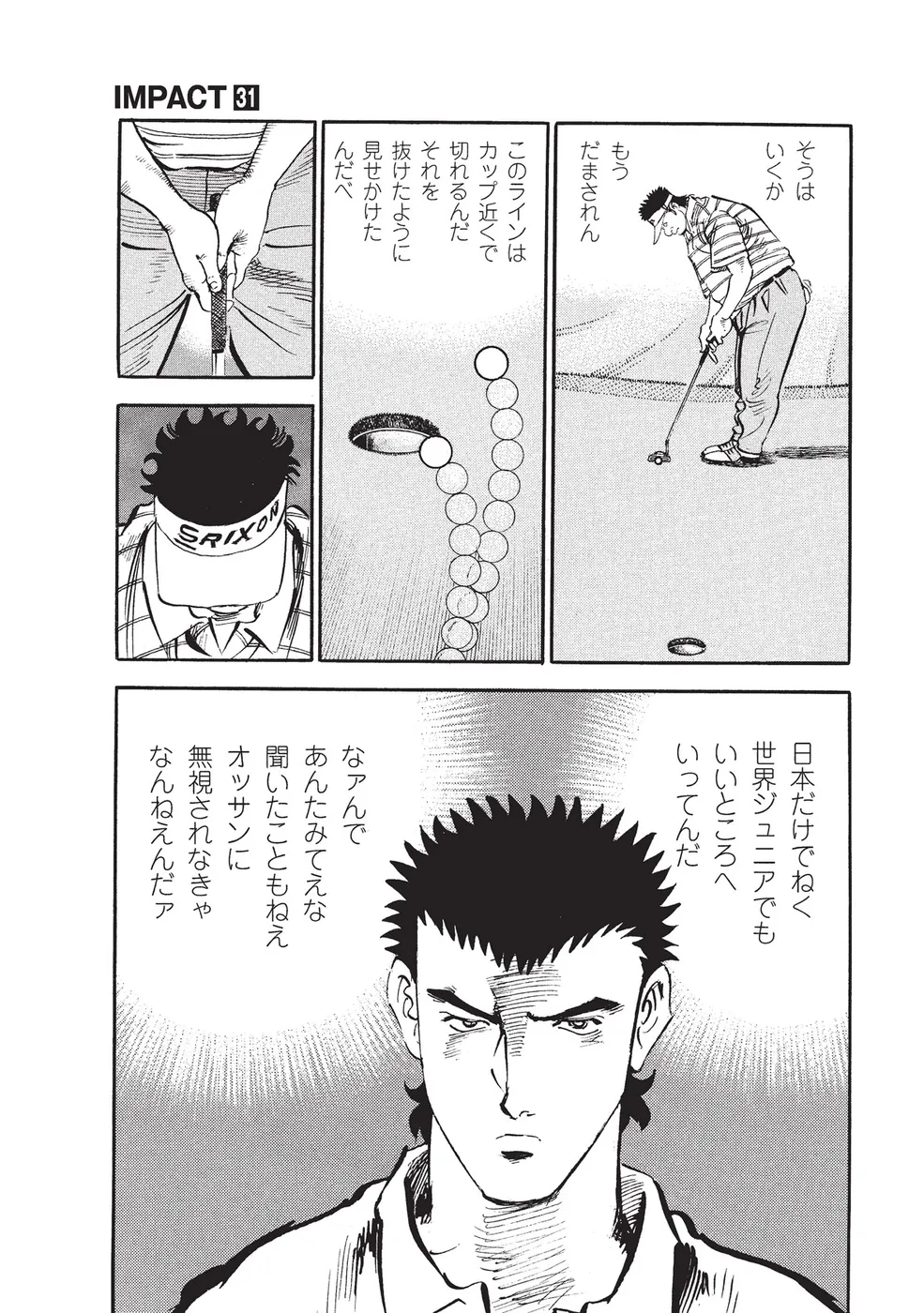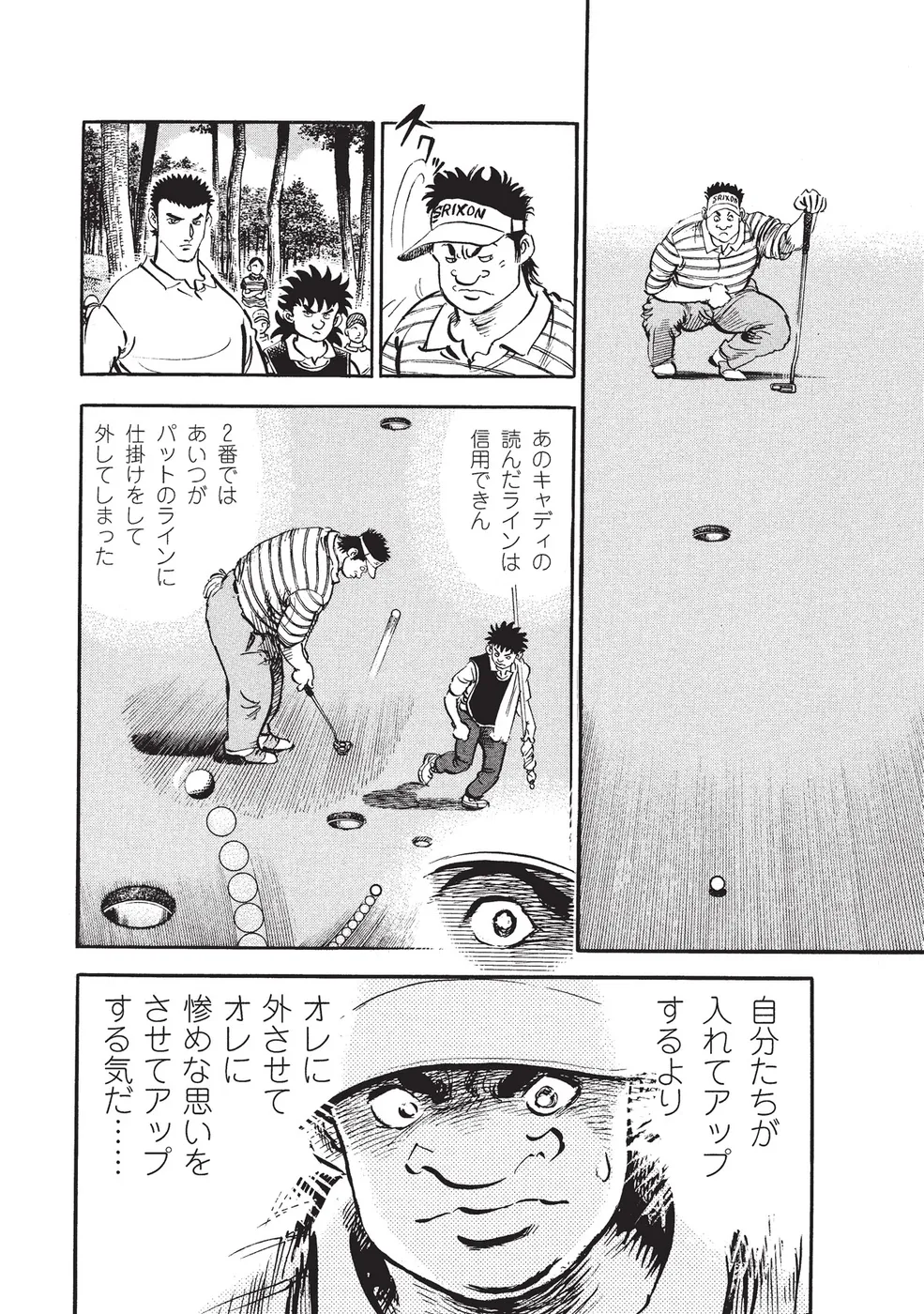 【第31巻あらすじ】日本アマチュア選手権決勝。暗闇の中行われたプレーオフを勝ち抜き、何とか決勝に進出した一丸。しかし決勝前夜、刀鍛冶の師匠が倒れたために、急きょ徹夜での作刀を依頼される。そして、一睡もできないままマッチプレー一回戦を迎えることになる。