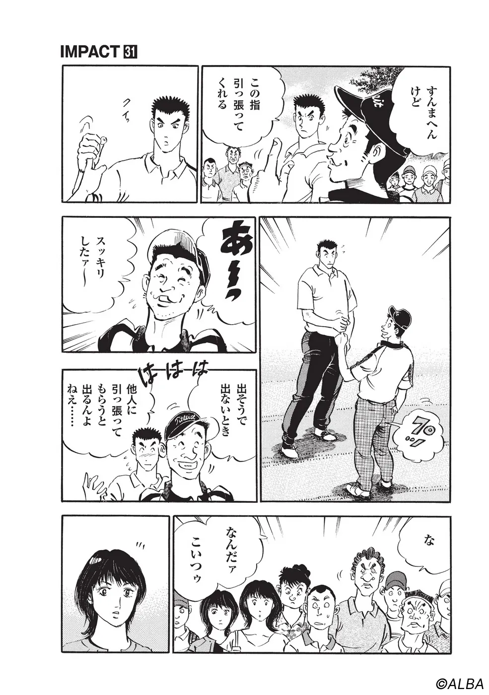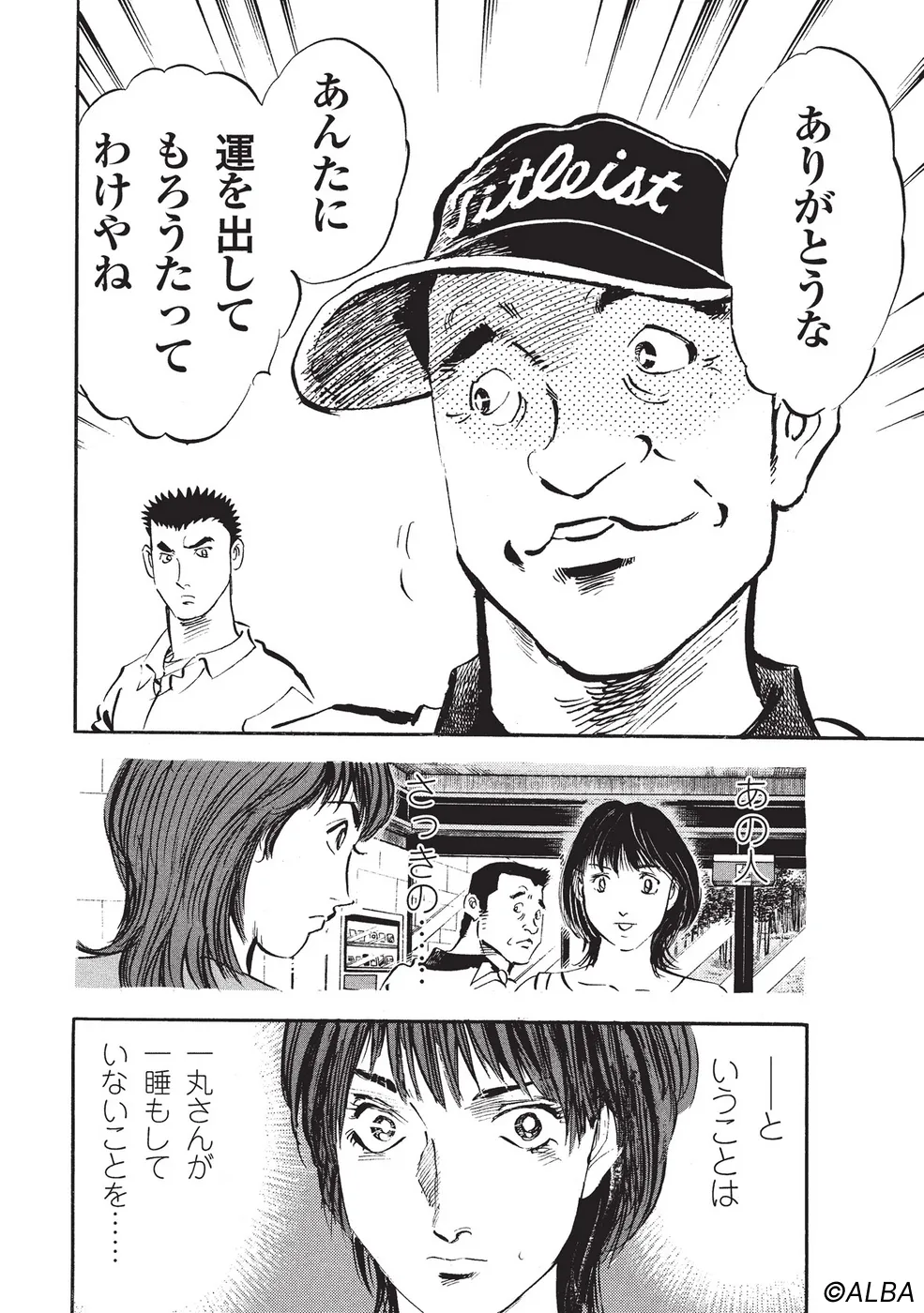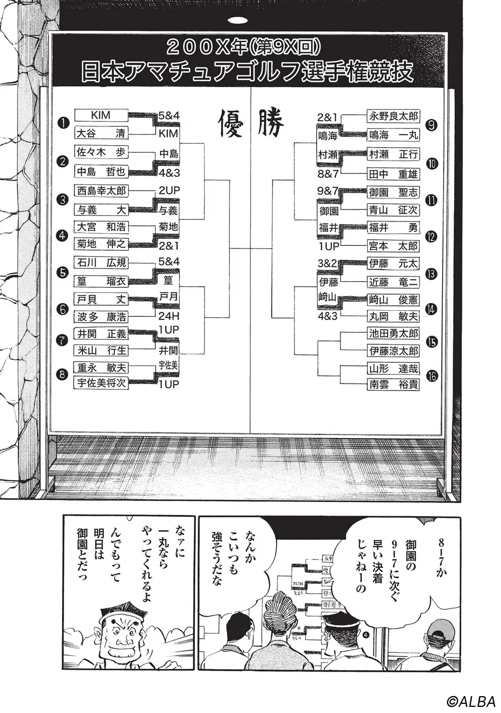 【第31巻あらすじ】日本アマチュア選手権決勝。暗闇の中行われたプレーオフを勝ち抜き、何とか決勝に進出した一丸。しかし決勝前夜、刀鍛冶の師匠が倒れたために、急きょ徹夜での作刀を依頼される。そして、一睡もできないままマッチプレー一回戦を迎えることになる。