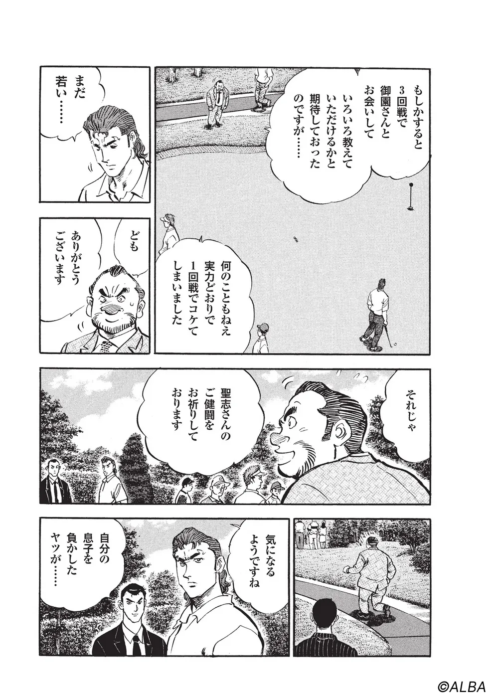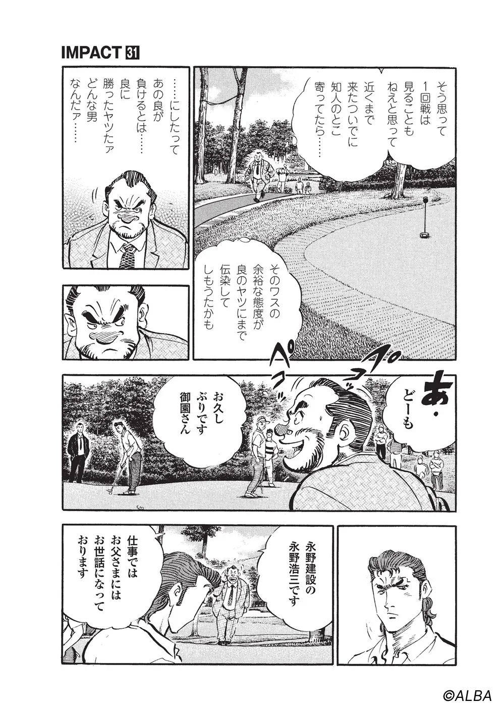 【第31巻あらすじ】日本アマチュア選手権決勝。暗闇の中行われたプレーオフを勝ち抜き、何とか決勝に進出した一丸。しかし決勝前夜、刀鍛冶の師匠が倒れたために、急きょ徹夜での作刀を依頼される。そして、一睡もできないままマッチプレー一回戦を迎えることになる。