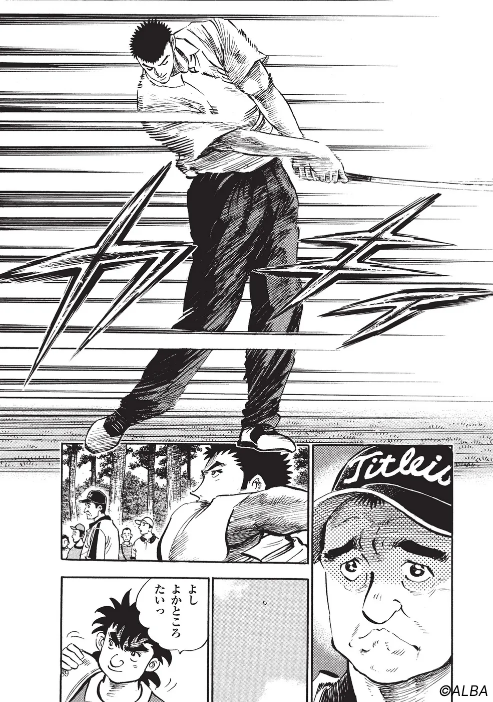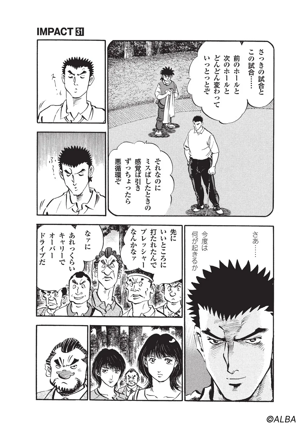 【第31巻あらすじ】日本アマチュア選手権決勝。暗闇の中行われたプレーオフを勝ち抜き、何とか決勝に進出した一丸。しかし決勝前夜、刀鍛冶の師匠が倒れたために、急きょ徹夜での作刀を依頼される。そして、一睡もできないままマッチプレー一回戦を迎えることになる。