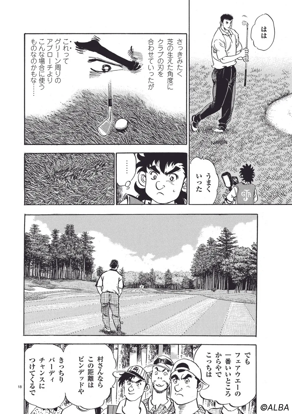 【第33巻あらすじ】日本アマ、マッチプレー2回戦。ベテラン村瀬との戦いは、一丸のクラブが折れるなどトラブルが続き不利な展開が続いた。一丸、村瀬、それぞれの日本アマに対する思いが交錯するなか、いよいよ決着のときを迎える! 果たして3回戦に進むのは誰か⁉