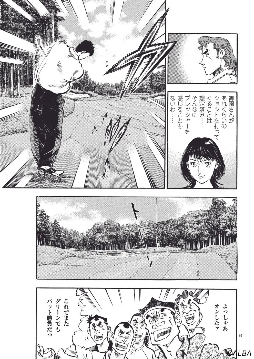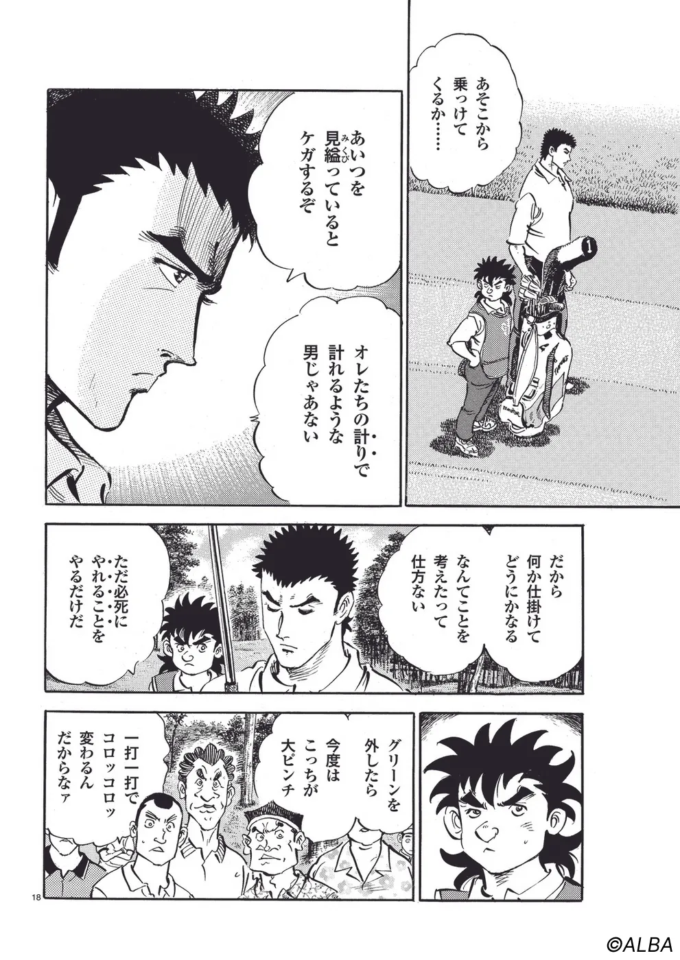 【第35巻あらすじ】前半9ホール、両者一度もパッティングをしないというとんでもない展開になっている日本アマ・マッチプレー3回戦。ショット、マネジメントともにほとんど隙を見せない御園に対し、一丸はどのように勝機を見いだしていくのか!? キャディ同士の駆け引きも必読!