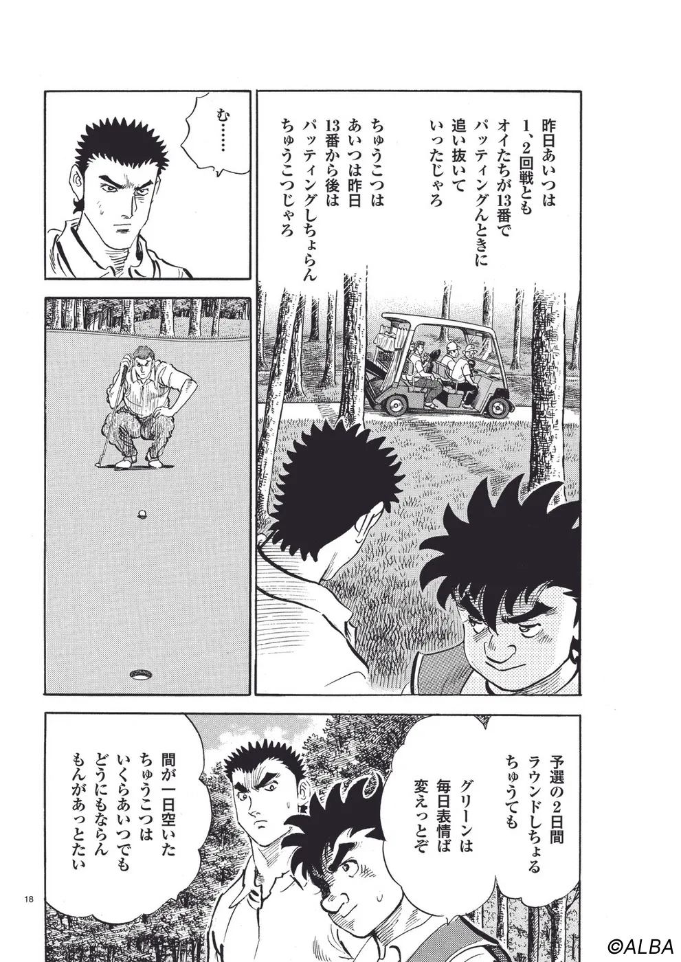 【第35巻あらすじ】前半9ホール、両者一度もパッティングをしないというとんでもない展開になっている日本アマ・マッチプレー3回戦。ショット、マネジメントともにほとんど隙を見せない御園に対し、一丸はどのように勝機を見いだしていくのか!? キャディ同士の駆け引きも必読!