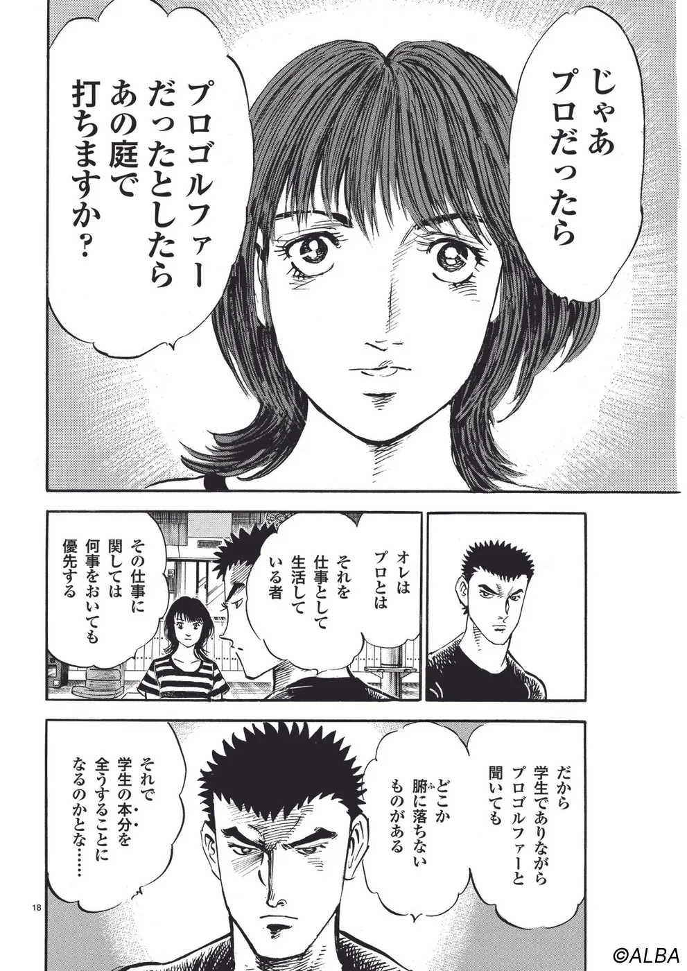 【第37巻あらすじ】日本アマ・マッチプレー3回戦。御園との激闘を奇跡的に制し、引退に追い込んだ一丸。しかし、続く準決勝では「燃え尽き症候群」を感じさせるようなゴルフで精細を欠く。果たして決勝へコマを進め、アマチュア日本一の称号を手にすることはできるのか!?