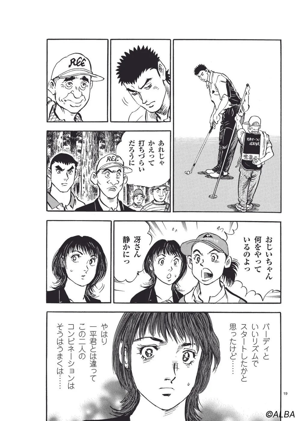 【第39巻あらすじ】日本オープン開幕。クラフトマンである徳利が組み上げたドライバーを一度も試すことなく1番ティーグラウンドへ向かった一丸。コースメンバーである玉木修造をキャディに従え、井上誠一設計の難コースに挑む。そして、新たなライバル・速水駿も登場する。