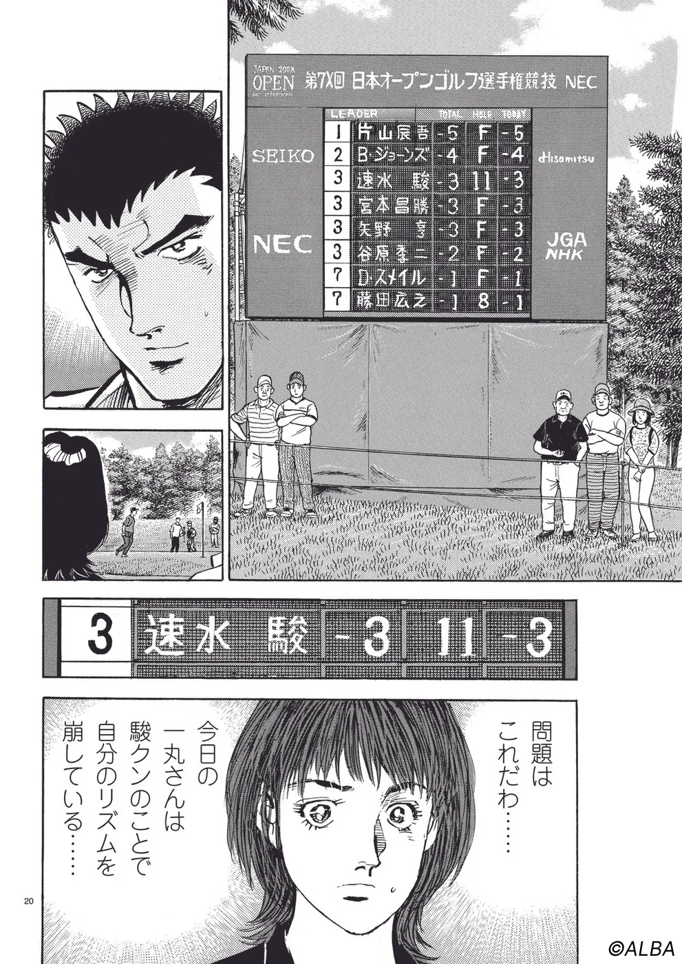 【第39巻あらすじ】日本オープン開幕。クラフトマンである徳利が組み上げたドライバーを一度も試すことなく1番ティーグラウンドへ向かった一丸。コースメンバーである玉木修造をキャディに従え、井上誠一設計の難コースに挑む。そして、新たなライバル・速水駿も登場する。
