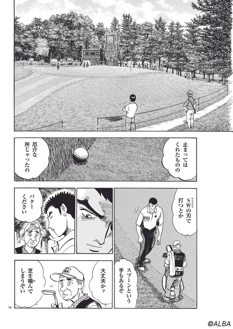 【第40巻あらすじ】龍ヶ崎CCを舞台とした日本オープン。初日9番ホールでまさかのダブルパーをたたいた一丸だったが、その後は落ち着いた試合運びでスコアを縮めていく。これからのゴルフ人生を左右する大会での予選通過、そしてライバル速水との戦いに向けて動き出す!