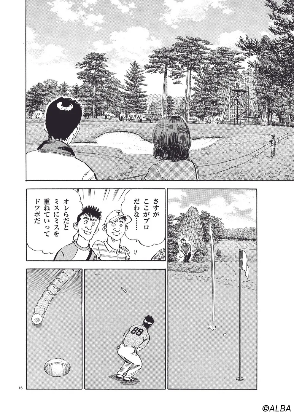 【第40巻あらすじ】龍ヶ崎CCを舞台とした日本オープン。初日9番ホールでまさかのダブルパーをたたいた一丸だったが、その後は落ち着いた試合運びでスコアを縮めていく。これからのゴルフ人生を左右する大会での予選通過、そしてライバル速水との戦いに向けて動き出す!